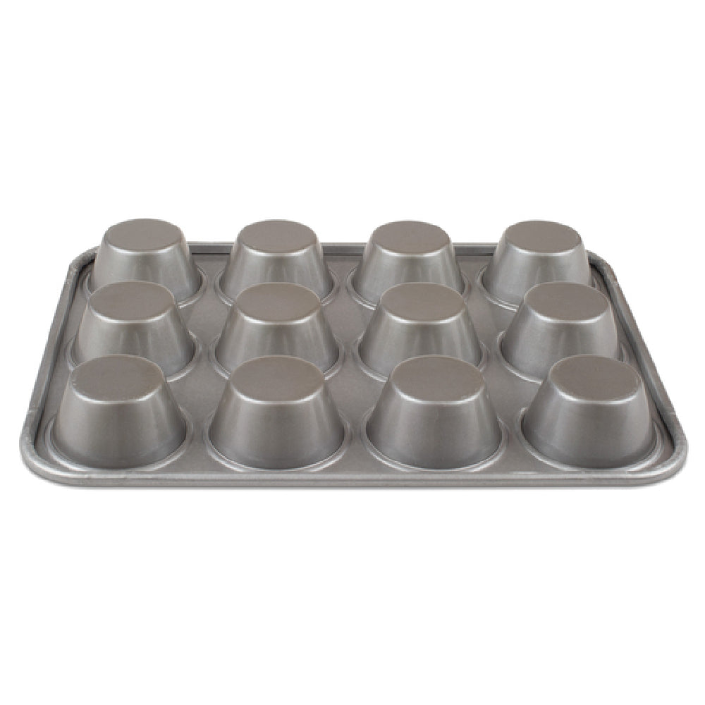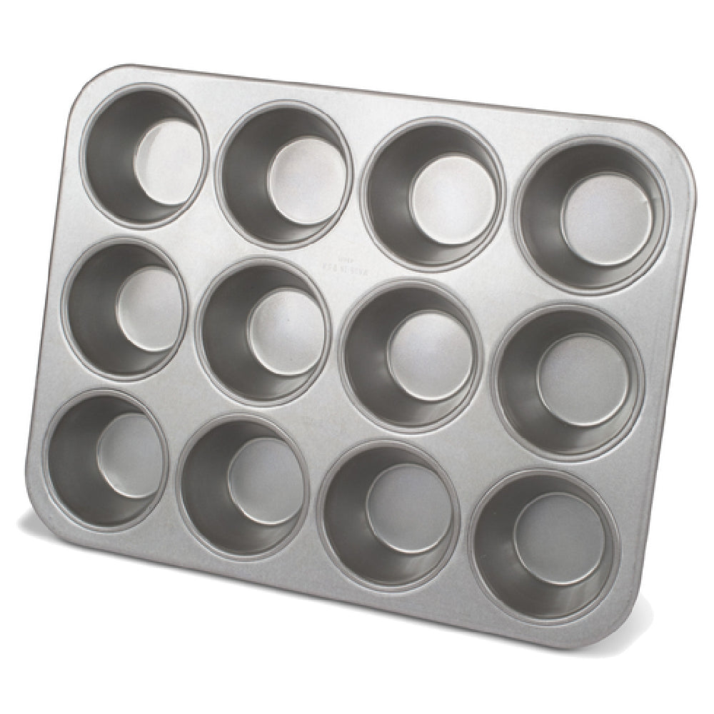 The JB Prince M491 Chicago Muffin Pan 17-7/8" x 13-1/2" Jumbo is a premier choice for culinary professionals and baking enthusiasts alike. This jumbo-sized muffin pan features 12 cups, each crafted to deliver consistent baking results. Constructed from high-quality aluminized steel, the pan ensures excellent heat distribution and durability, making it a reliable tool in any kitchen setting. The glazed finish provides a non-stick surface, allowing for easy release of baked goods and effortless cleaning. Measuring 17-7/8 inches by 13-1/2 inches, this muffin pan is designed to accommodate large-scale baking needs, ideal for commercial bakeries and restaurants that demand efficiency and quality. Its robust size and premium materials make it particularly suited for high-volume environments, where consistency and ease of use are paramount. Whether you are catering to a bustling café or experimenting with new recipes in a gourmet kitchen, the JB Prince M491 Chicago Muffin Pan offers a combination of practicality and performance. Its durable aluminized steel construction ensures longevity, while the glazed coating enhances user convenience, making it a valuable addition to any professional or home bakery.