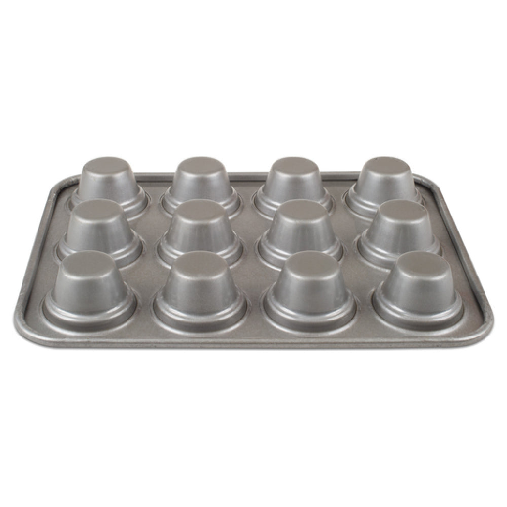 The JB Prince M492 Chicago Muffin Pan is a meticulously crafted kitchen tool that measures 18 inches by 13 inches, featuring 12 cups designed for optimal baking performance. This muffin pan is constructed from aluminized steel, a material renowned for its exceptional heat conduction and durability, ensuring consistent baking results across all cups. The pan's surface is glazed, providing a sleek finish that enhances its non-stick properties, making it easier to release baked goods without compromising their shape or structure. The crown design of the cups adds a professional touch to your muffins, elevating their presentation. This muffin pan is a versatile choice for both professional and home bakers who demand precision and quality in their baking equipment. It is particularly suitable for bakery operations that require uniformity in muffin size and quality, contributing to efficient production processes. The robust construction of the JB Prince M492 ensures longevity even under frequent use, making it a reliable component of any bakeware collection. With its combination of thoughtful design and superior materials, this muffin pan stands out as a valuable asset for any culinary setting, from commercial kitchens to gourmet home baking environments.