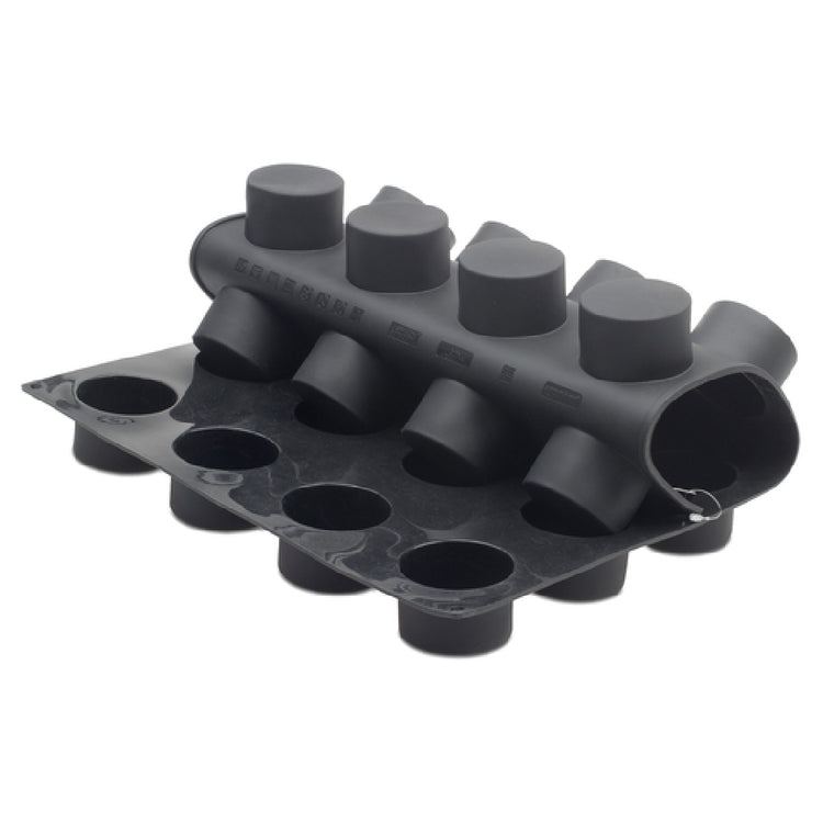 The JB Prince M619 A Pavoni Pavoflex Mold is a versatile and essential tool for culinary professionals, measuring 23-1/2 inches in length by 15-3/4 inches in width. This high-quality mold is designed to create 24 cilindro shapes, each with a diameter of 2-1/2 inches and a height of 1-3/5 inches, offering a generous 4-11/16 ounce capacity per cavity. Crafted from flexible silicone, this mold is both non-stick and durable, ensuring ease of use and longevity. The black silicone construction allows for effortless demolding, maintaining the integrity of delicate creations. It is capable of withstanding a wide temperature range from -40 to 536 degrees Fahrenheit, making it suitable for both freezing and baking applications. This unique feature enhances its appeal to pastry chefs and caterers who demand high performance and adaptability in their tools. Whether used in professional kitchens or gourmet home setups, the JB Prince M619 A Pavoni Pavoflex Mold provides the precision and quality required for extraordinary culinary presentations. Its robust construction and versatile design make it a valuable addition to any kitchen, catering to a wide range of culinary needs and enhancing creative possibilities in the art of dessert making.