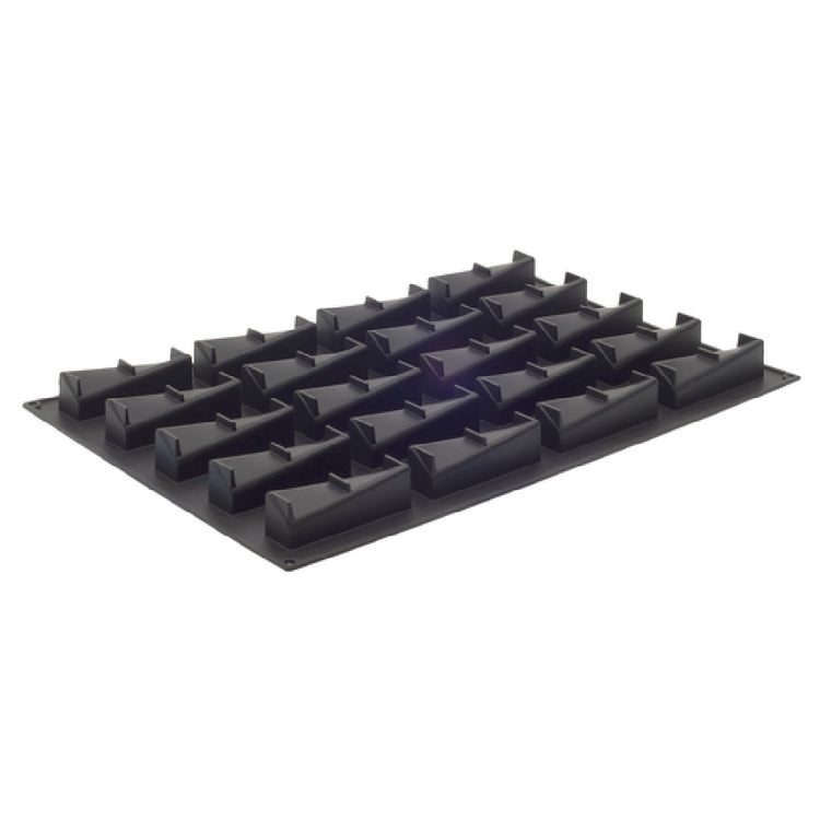 The JB Prince M620 G Pavoni Pavoflex Mold is a meticulously designed kitchen tool measuring 23-1/2"L x 15-3/4"W, featuring (20) twisted rectangle molds each with dimensions of 4-3/4"L x 1-1/4"W x 1-1/2"H. With a capacity of 3-7/8 oz each, this mold is engineered to accommodate a wide range of culinary creations. The silicone construction ensures flexibility and a non-stick surface, enhancing ease of use and product longevity. Suitable for a diverse temperature range from -40 to 536°F, this mold is adaptable for various cooking and freezing applications. Its sleek black finish complements professional kitchen aesthetics while offering robust performance under high-demand conditions. This mold is particularly valuable for patisseries and culinary professionals seeking precision and consistency in their presentations. The JB Prince M620 G Pavoni Pavoflex Mold caters to the intricate needs of pastry chefs and bakers, offering a unique blend of flexibility, durability, and design innovation. By supporting a wide temperature range and providing a non-stick, easy-release surface, it elevates efficiency and creativity in professional kitchens, making it a staple tool for culinary excellence.