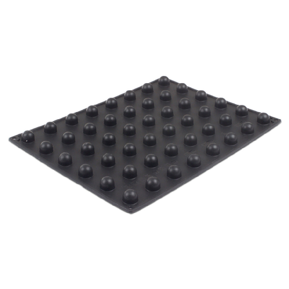 The JB Prince M621 T Pavoni Pavoflex Mold 16"L x 12"W (48) Small Sfera is a specialized culinary tool engineered for precision and creativity in professional kitchens. Crafted from high-quality, non-stick silicone, this flexible mold features a grid of 48 small spherical cavities, each with a diameter of 4/5 inches and a capacity of 3/10 ounces. These specifications make it ideal for producing consistent, miniature spherical treats, catering to both confectionery and savory applications. The mold's robust temperature range of -40 to 536 degrees Fahrenheit ensures versatility, accommodating both freezing and baking processes without compromising the mold's integrity. Designed in a sleek black finish, this Pavoflex mold is not only functional but also visually appealing, making it a staple in culinary environments that prioritize both efficiency and style. Its flexible structure allows for easy de-molding, maintaining the delicate shape of each creation. This product is particularly valuable for pastry chefs, caterers, and gourmet enthusiasts seeking to elevate their presentation and expand their culinary repertoire. Whether used in high-volume production or artisanal crafting, the JB Prince M621 T Pavoni Pavoflex Mold delivers exceptional results, supporting innovation and excellence in culinary artistry.
