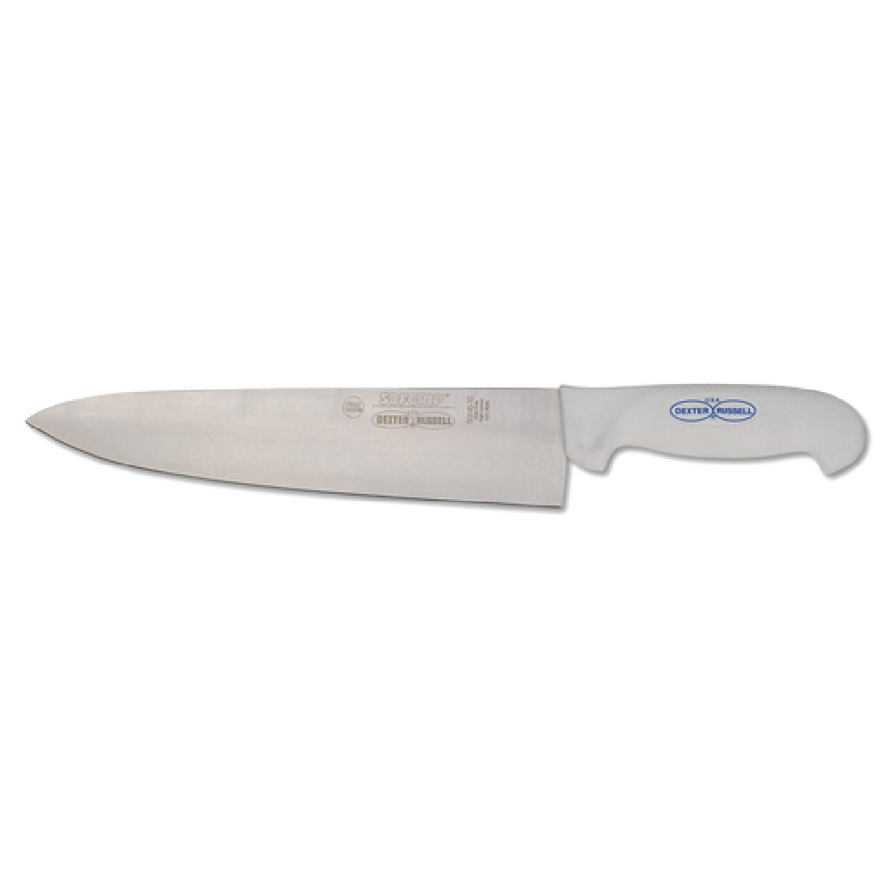 The JB Prince M805 10 Dexter Russell Chef's Knife 10" is a premier tool for culinary professionals and enthusiasts alike, defined by its precise craftsmanship and durable materials. This high-performance chef's knife boasts a 10-inch blade made from stamped high carbon stainless steel, offering exceptional sharpness and edge retention for a variety of cutting tasks. The high carbon stainless steel composition ensures a robust resistance to corrosion and staining, making it a reliable choice for rigorous kitchen environments. Complementing its durable blade is a rubber handle in a sleek white finish, designed to provide a comfortable grip and reduce hand fatigue during prolonged use. Proudly made in the USA, this knife adheres to the National Sanitation Foundation (NSF) standards, emphasizing its commitment to maintaining high levels of safety and hygiene. The JB Prince M805 10 Dexter Russell Chef's Knife is a versatile tool suitable for various segments within the culinary industry, from bustling professional kitchens to dedicated home cooks seeking exceptional cutting performance. Its blend of ergonomic design and superior materials positions it as a valuable asset for those who require precision and reliability in their kitchen tools.