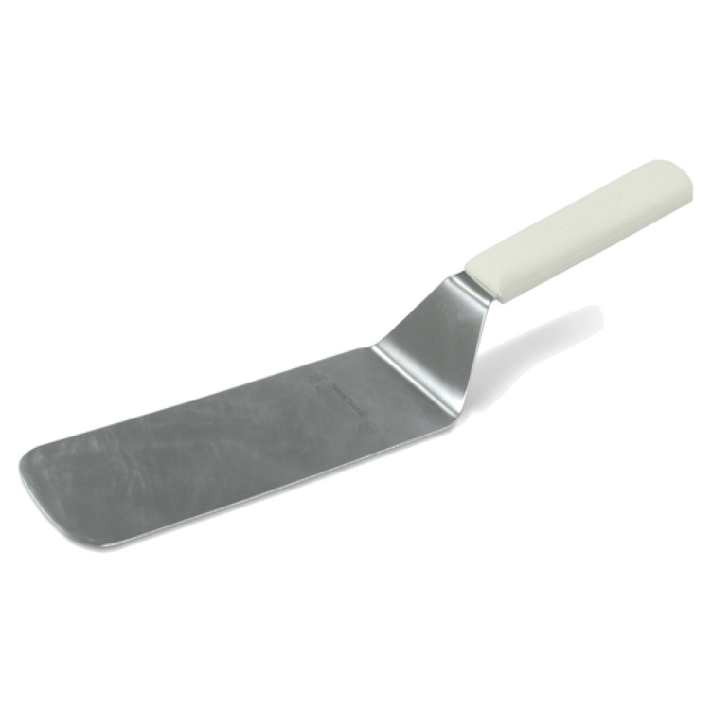 The JB Prince M939 PL Dexter Russell Turner 8" x 3" Solid is a versatile kitchen tool designed to meet the high demands of professional chefs and cooking enthusiasts alike. With an 8-inch by 3-inch solid stainless steel blade, this turner promises durability and longevity, making it a reliable companion for various culinary tasks. The stainless steel construction ensures resistance to rust and corrosion, maintaining its pristine condition even with frequent use. Equipped with a white plastic handle, this turner provides a comfortable and secure grip, enabling precision and control during food preparation. The combination of stainless steel and plastic materials not only offers a lightweight design but also enhances its ease of use in fast-paced kitchen environments. This product is particularly suitable for flipping and turning large items, catering to the needs of professionals working in restaurants, hotels, and catering services, as well as home cooks looking for robust and efficient kitchen tools. The JB Prince M939 PL Dexter Russell Turner is an essential addition to any kitchen, reflecting a blend of functionality, durability, and ergonomic design, ensuring it meets the diverse needs of the culinary industry.