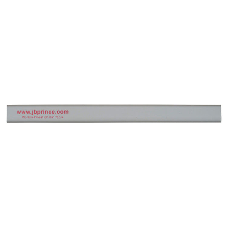 The JB Prince M964 C Knife Guard is a specialized protective accessory designed to preserve the sharpness and integrity of your knives. Measuring 12-1/2 inches in length and 1 inch in width, this plastic knife guard offers a reliable safeguard for blades of varying sizes. Its gray plastic construction provides a durable and lightweight protective solution, suitable for both professional chefs and home cooking enthusiasts. The JB Prince M964 C Knife Guard is particularly beneficial in commercial kitchen environments, where it adds an extra layer of safety during storage and transport. Its compact dimensions make it an ideal fit for most knife bags and storage containers, ensuring that your cutting tools are protected from accidental damage. This knife guard stands out in the market for its practicality and essential role in knife maintenance, catering to culinary professionals, students, and anyone who values the longevity of their kitchen tools. Its straightforward design emphasizes functionality and efficiency, making it a valuable addition to any kitchen setup.
