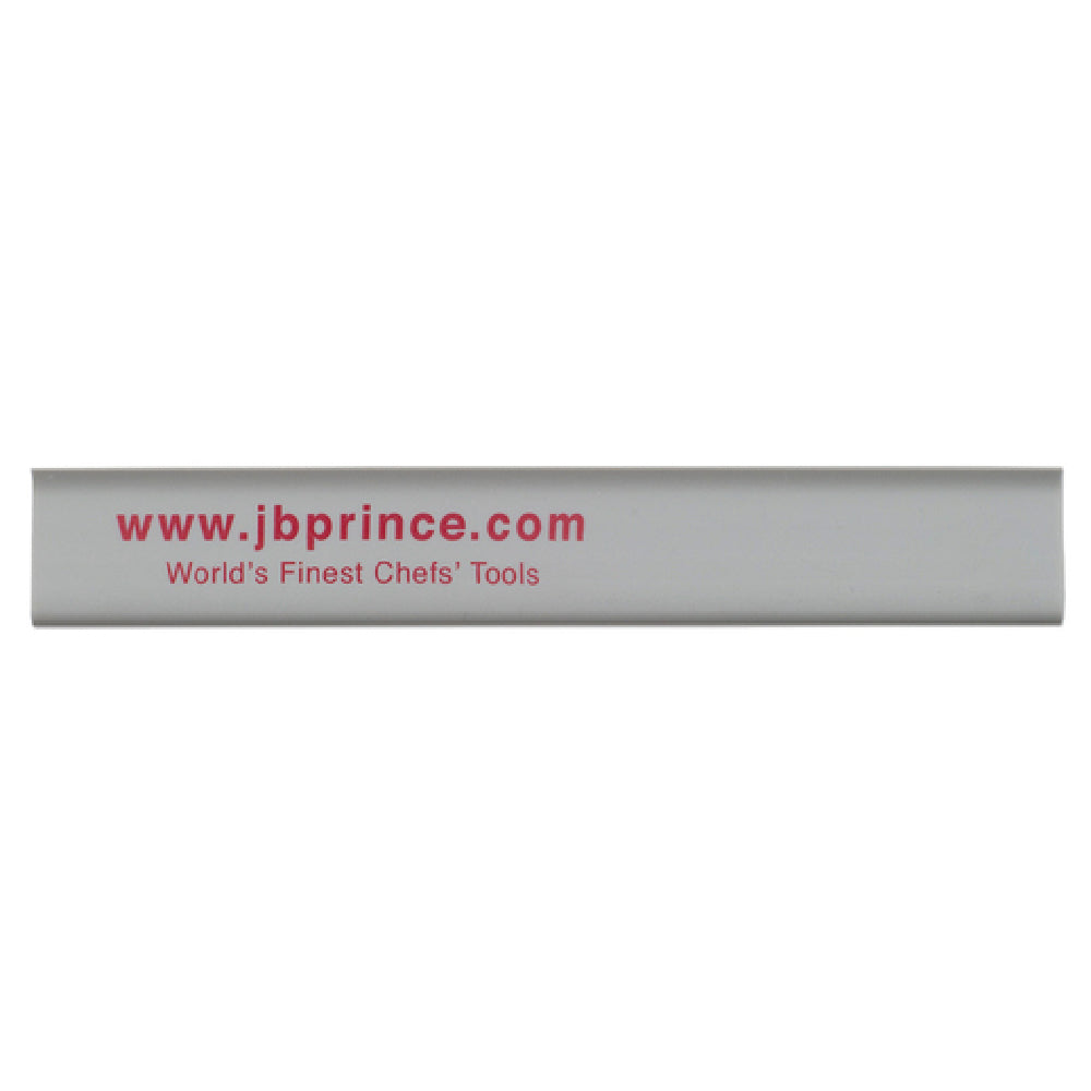The JB Prince M964 G Knife Guard is a precision-designed protective accessory, measuring 6-1/2 inches in length and 1 inch in width, tailored to accommodate a variety of knives in professional culinary environments. Crafted from durable plastic and presented in a sophisticated gray hue, this knife guard ensures the longevity and sharpness of your blades when not in use. The compact dimensions of the knife guard make it suitable for chefs who require reliable protection for their essential tools without adding unnecessary bulk. Its robust plastic construction offers a lightweight yet sturdy barrier against potential damage, making it a valuable asset for maintaining the integrity of your knives during transportation or storage. The JB Prince M964 G Knife Guard is particularly advantageous for culinary professionals who value precision and safety in their workspace, providing a simple yet effective solution to avoid accidental nicks and dulling. This knife guard's versatile size and design make it an indispensable tool across diverse culinary sectors, from bustling restaurant kitchens to personal chef settings, ensuring that your cutting instruments remain in optimal condition for precise and efficient meal preparation.