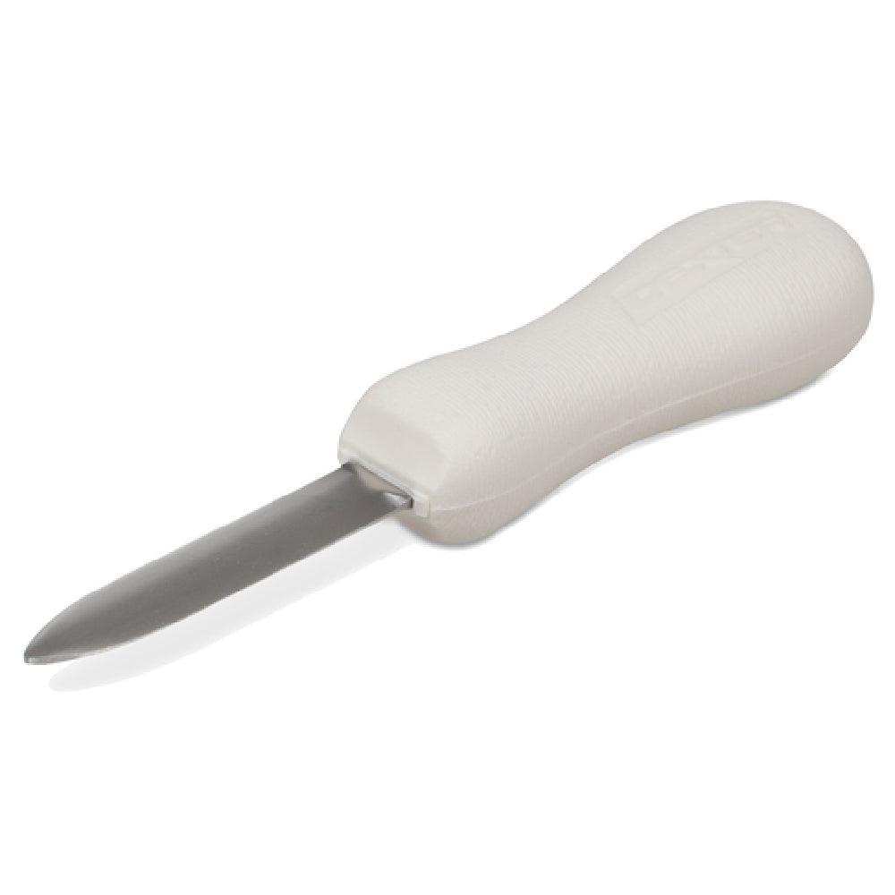 The JB Prince M988 Oyster Knife 3" Providence Type is a precision tool crafted for professional and home use, designed to meet the demands of oyster shucking with efficiency and ease. This knife features a 3-inch blade, ideal for effectively opening oysters of various sizes, making it an essential addition to any seafood preparation toolkit. The blade is constructed from high-quality stainless steel, ensuring long-lasting sharpness and resistance to corrosion, while the white plastic handle provides a comfortable grip, enhancing user control and safety during use. Proudly made in the USA, this oyster knife complies with NSF standards, signifying its adherence to strict public health and safety regulations, which is crucial for commercial kitchen environments. The Providence Type design signifies a specific blade shape and style optimized for oyster shucking, catering to the unique needs of culinary professionals and seafood enthusiasts alike. Whether utilized in the bustling environment of a restaurant kitchen or for personal culinary adventures at home, the JB Prince M988 Oyster Knife stands out as a reliable, high-performance tool that underscores quality craftsmanship and attention to detail, ensuring an exceptional shucking experience every time.