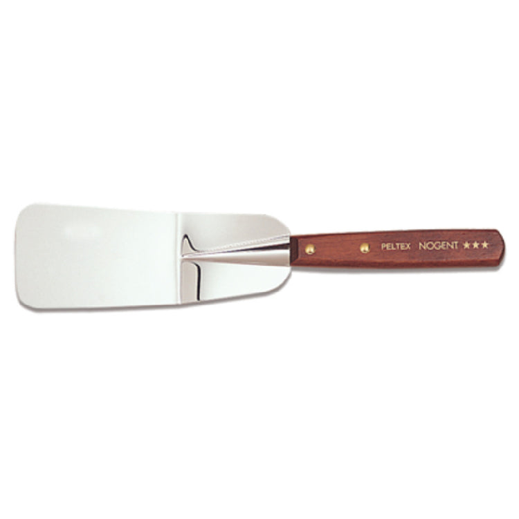 The JB Prince M992 Peltex Spatula 3-1/2" x 2-1/4" Offset is a high-quality kitchen tool designed for precision and durability, essential for culinary professionals and enthusiasts alike. This spatula features an offset design that allows for easy handling and maneuverability, making it ideal for intricate tasks such as lifting and turning delicate foods. Made from solid stainless steel, it offers exceptional strength and longevity, resisting rust and corrosion over time. The spatula's dimensions, 3-1/2 inches by 2-1/4 inches, make it suitable for a variety of kitchen tasks, from baking to sautéing. The inclusion of a wood handle not only provides a comfortable and ergonomic grip but also adds a touch of elegance to its design. Crafted in France, the JB Prince M992 Peltex Spatula reflects a commitment to quality and tradition, appealing to those who value craftsmanship and performance in their culinary tools. Its sturdy construction and thoughtful design make it a versatile choice for different market segments within the culinary industry, from professional chefs seeking reliable equipment to home cooks looking for durable and efficient kitchen accessories.