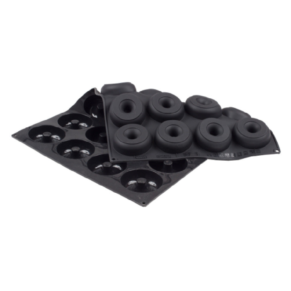 The JB Prince MA112 Donut Mold is a high-quality, flexible silicone baking tool designed to produce 24 donuts simultaneously, making it a perfect choice for commercial kitchens, bakeries, and confectionery manufacturers looking to maximize efficiency while ensuring consistent results. Each donut cavity measures 3-3/4 inches in length, 2-3/4 inches in width, and 15/16 inches in height, with a capacity of 4-1/2 ounces per donut, allowing for uniformity in size and shape across batches. The flexibility of the silicone material not only ensures ease in removal of baked goods but also enhances the durability and longevity of the mold itself, making it an economical choice for high-volume production environments. The JB Prince MA112 Donut Mold is particularly valuable for businesses aiming to streamline operations and maintain high production standards, ensuring that all donuts are baked to perfection with minimal effort and wastage. Its design caters to a range of market segments within the foodservice industry, from artisanal bakeries seeking to expand product lines to large-scale industrial kitchens aiming to enhance output without compromising on quality or consistency.