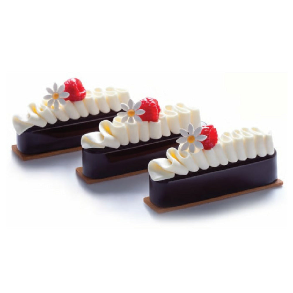 The JB Prince MA172 Antonio Bachour Pavoflex Silicone Mold Pastel (14) Forms is a meticulously designed culinary tool, engineered to meet the high standards of professional pastry chefs and baking enthusiasts alike. This mold, part of the renowned Pavoflex line, is crafted from premium silicone, ensuring flexibility and durability that withstands frequent use in busy kitchen environments. The product features 14 distinct forms, allowing for the creation of intricate and refined pastel desserts with consistent shapes and textures. Each form is designed to release contents effortlessly, promoting efficiency and precision in dessert presentation. The silicone's non-stick quality not only enhances ease of use but also simplifies cleaning, making it an ideal choice for high-volume professional kitchens. This versatile mold is suitable for a variety of temperature conditions, offering adaptability for both hot and cold applications in pastry making. The JB Prince MA172 aligns with the industry's demands for innovative and practical baking solutions, providing a unique value proposition that caters to the creative needs of bakers aiming to produce sophisticated and aesthetically pleasing desserts. Its thoughtful design and reliable performance make it a valuable addition to any culinary arsenal, enhancing the quality and efficiency of dessert production processes.