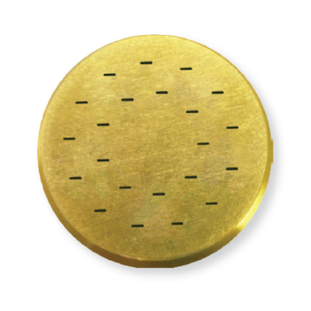 The JB Prince P363 E AEX18 Pappardelle 25mm Die Brass is a high-quality pasta-making tool designed with precision and durability in mind. Made in Italy, this die is crafted from robust brass, known for its superior heat conduction and sturdiness, ensuring consistent pasta production. The die is specifically engineered to produce pappardelle, a broad, flat pasta that measures 25mm in width, perfect for capturing rich sauces. This product is tailored for the culinary professional, offering a reliable solution for creating authentic Italian pasta in commercial kitchens. Its precise dimensions and material choice highlight the brand's commitment to excellence and dedication to meeting the needs of chefs who demand the best in their culinary arsenal. The use of brass not only enhances the longevity of the die but also contributes to the texture and quality of the pasta, making it a staple for pasta connoisseurs and high-end restaurants alike. This tool is an essential component for chefs looking to produce consistent, high-quality pasta, emphasizing both functionality and tradition in pasta-making techniques.