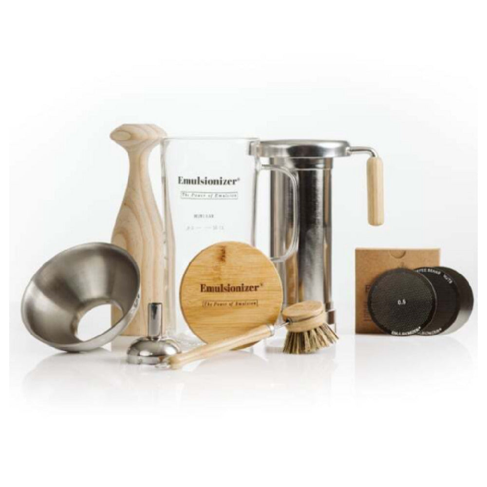 JB Prince, P586, Emulsionizer, 22"W x 13"D x 6.5"H, (1) screwable stainless steel filter, (3) interchangeable disc, (1) wooden mortar, (1) borosilicate jar with bamboo lid, (1) detachable funnel, (1) zero waste brush