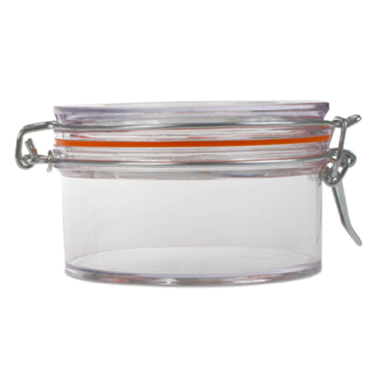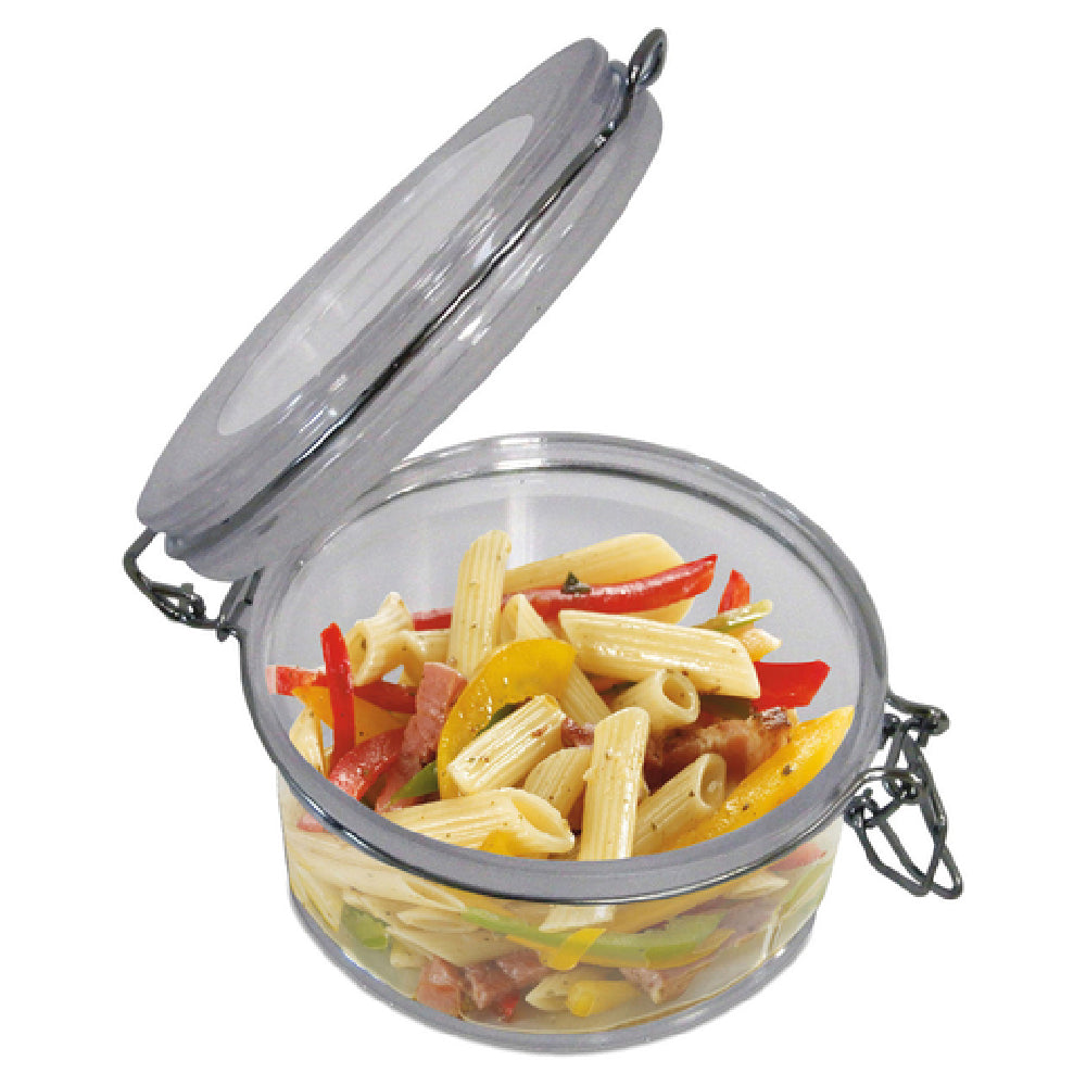 JB Prince R1011 C Mason Jar 10 oz.- 4-1/10" Dia. X 2-1/2"H is a versatile and practical solution for a variety of storage needs across multiple industry segments. This round, transparent plastic jar is designed with precision, offering a substantial capacity of 10 ounces, ideal for culinary professionals and home chefs alike. With a diameter of 4-1/10 inches and a height of 2-1/2 inches, the jar provides ample space while maintaining a compact form, making it perfect for storing spices, sauces, or small kitchen ingredients. Its transparent design allows for easy identification of contents at a glance, enhancing efficiency in fast-paced environments. Manufactured by JB Prince, this mason jar is packaged in sets of six, offering value and convenience for bulk storage requirements. The durable plastic construction ensures longevity and reliability, even with frequent use, making it an excellent choice for restaurants, catering services, or home kitchens. The JB Prince R1011 C Mason Jar is not only a functional storage option but also an effective organizational tool, contributing to streamlined operations in any culinary setting.