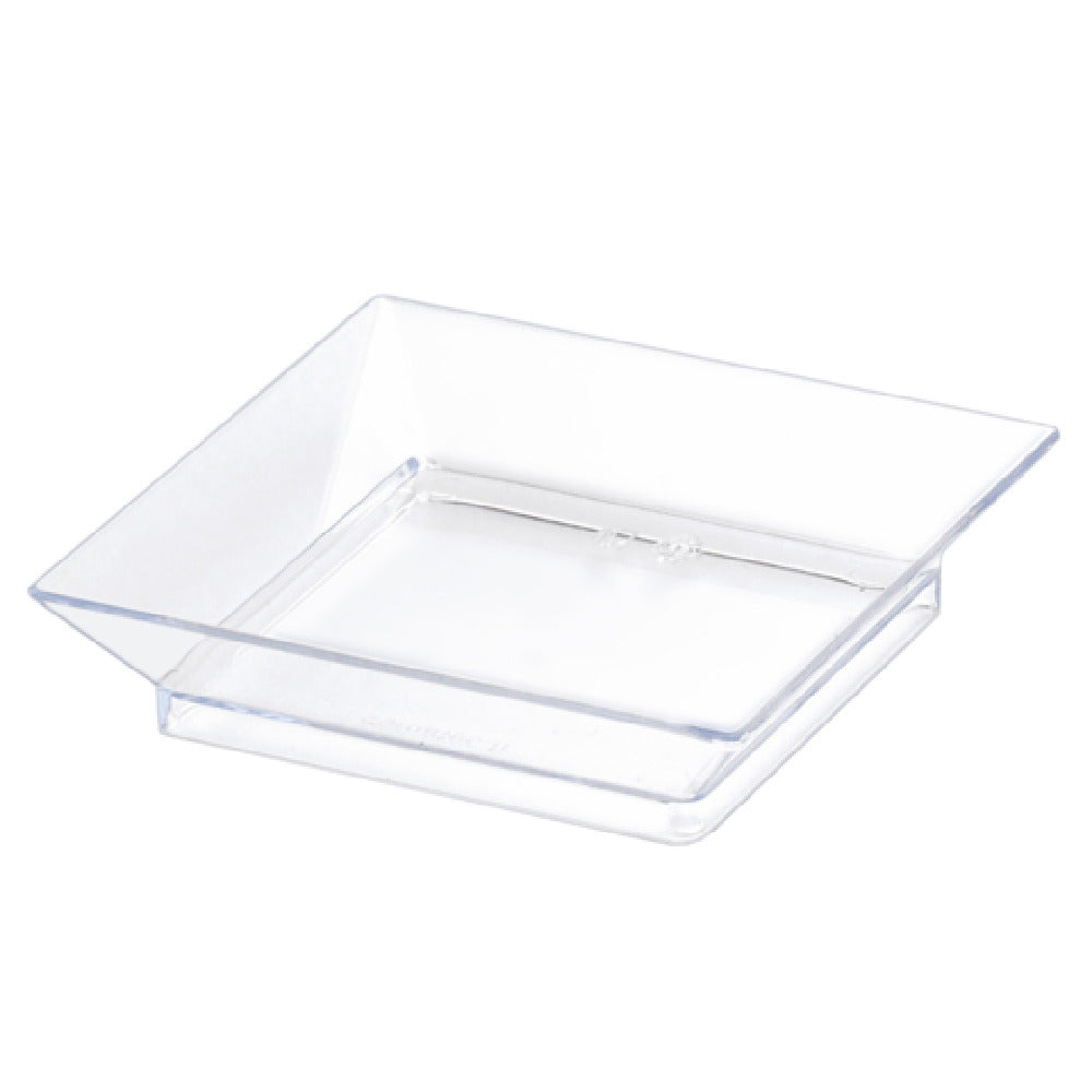 The JB Prince R496 Comatec Disposable Dish is a high-quality product designed for various professional culinary applications. With a capacity of 1 oz., this dish is ideal for serving small portions and samples, making it perfect for catering events, buffets, and food tastings. The dish measures 2-1/3 inches in length, 2-1/3 inches in width, and 1/2 inch in height, presenting an elegant square shape that adds a touch of sophistication to any presentation. Crafted from clear plastic, it offers the advantage of transparency, allowing the colors and textures of the food to be showcased beautifully. Sold in packs of 360, these disposable dishes are a cost-effective solution for large-scale events and high-volume food service operations. Their lightweight design ensures easy handling and disposal, streamlining the service process and reducing cleanup time. The JB Prince R496 Comatec Disposable Dish is a versatile choice that caters to diverse market segments, including restaurants, hotels, and catering companies, providing a practical and aesthetically pleasing option for serving a wide range of culinary creations. Its combination of practical features and elegant design makes it a valuable addition to any food service environment.