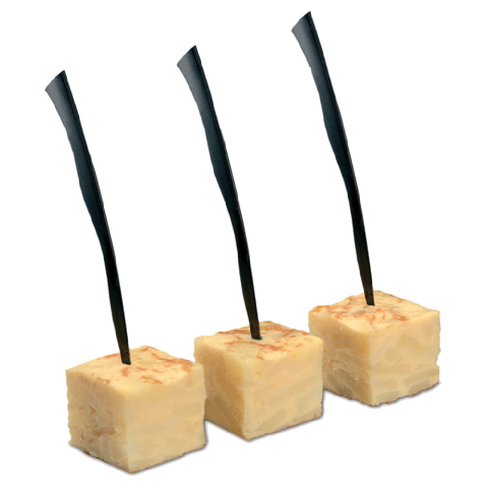 The JB Prince R520 B Tast Picks, measuring 3-1/2 inches and crafted from durable plastic, are an essential tool for culinary professionals seeking precision and elegance in food presentation. Packaged in a convenient set of 425 picks, these black tast picks are designed to enhance the visual appeal of hors d'oeuvres, appetizers, and bite-sized creations. The size and material of these picks make them a versatile choice for catering events, restaurants, and gourmet food presentations, ensuring that each piece maintains its structural integrity while offering a sleek and sophisticated appearance. The JB Prince R520 B Tast Picks present a reliable solution for chefs and food service professionals looking to maintain consistency in food handling and presentation without compromising on style. Their compact size allows for easy insertion into various food items, providing a practical and hygienic option for guests to enjoy small bites. This product’s high-quality construction ensures that it meets the rigorous demands of the culinary industry, making it a valuable component in any kitchen or event setting where presentation is key.