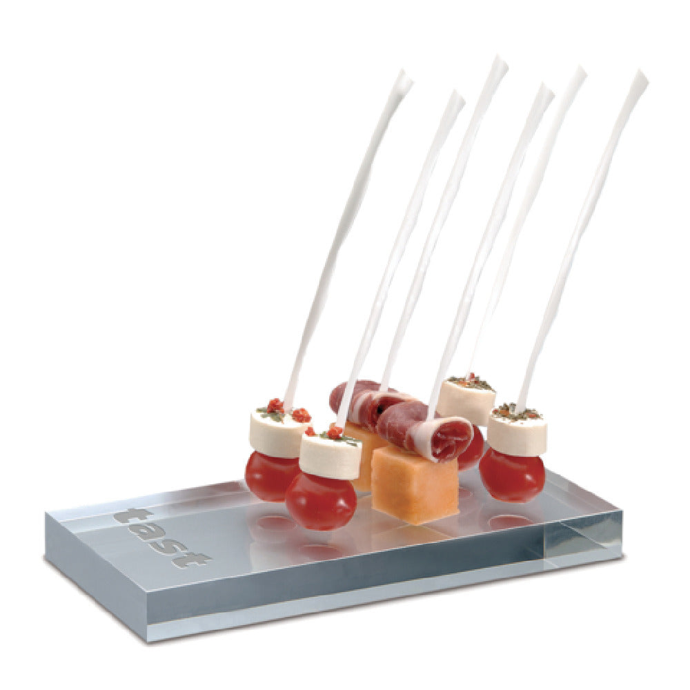 The JB Prince R521 W Tast Skewers - 7"L Plastic - is an essential tool for culinary professionals seeking precision and reliability in food presentation. Measuring 7 inches in length, these skewers are crafted from high-quality plastic, offering durability and flexibility in various culinary settings. The white color of these skewers provides a neutral backdrop that enhances the visual appeal of the food items being served, making them ideal for both casual and formal dining experiences. With a substantial pack size of 350 skewers, they are perfectly suited for large-scale events and caterings as well as daily restaurant use, ensuring ample supply for continuous service. The plastic construction of the JB Prince R521 W Tast Skewers underscores their lightweight nature, facilitating ease of use and handling during food preparation and service. These skewers are a versatile choice for professionals in both the catering and restaurant industries, as they offer an efficient and stylish solution for serving appetizers, hors d'oeuvres, and other skewered dishes. Their design and material composition make them well-suited for a range of environments, providing both aesthetic value and practical function to enhance any culinary presentation.