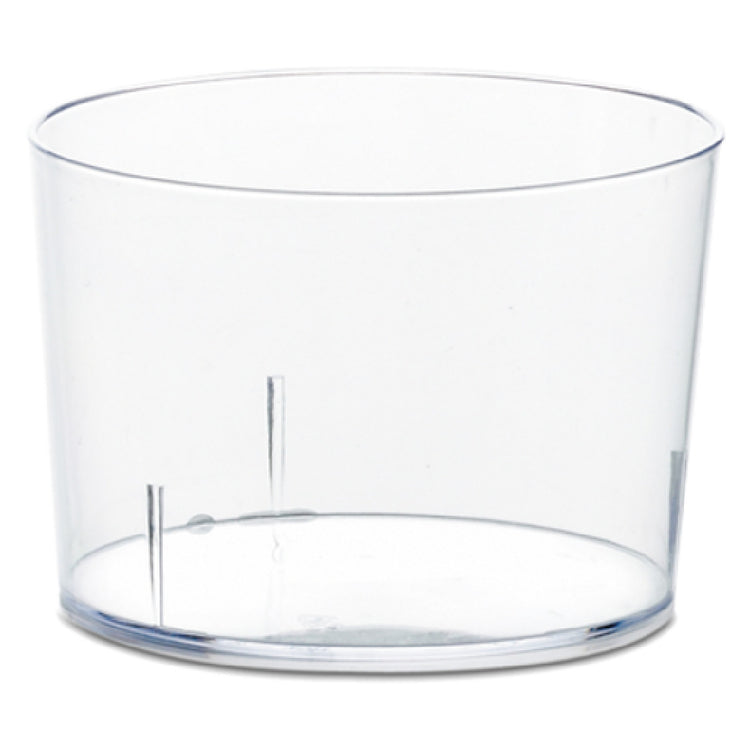 The JB Prince R736 Comatec Disposable Cup - 6 oz., 2-6/7" dia. x 2"H is a versatile solution for various industry segments requiring efficient and hygienic serving options. This small, transparent plastic cup comes in a pack of 300, making it ideal for catering businesses, event planners, and food service professionals who need an economical yet presentable way to offer beverages or desserts. Its 6-ounce capacity is perfect for serving controlled portions of liquids or small dessert servings, appealing to the hospitality industry's focus on portion control. The cup's dimensions - 2-6/7 inches in diameter and 2 inches in height - ensure compatibility with numerous serving trays and storage solutions, enhancing operational efficiency in fast-paced environments. Crafted from transparent plastic, the cup provides an attractive presentation, allowing the contents to be showcased appealingly, which is crucial for high-end catering events and gourmet presentations. The disposable nature of the JB Prince R736 Comatec Cup meets the demands for quick and easy clean-up, reducing labor costs and making it a practical choice for large-scale events or high-turnover establishments. This product effectively blends practicality, efficiency, and presentation aesthetics, meeting the diverse needs of the food service industry.