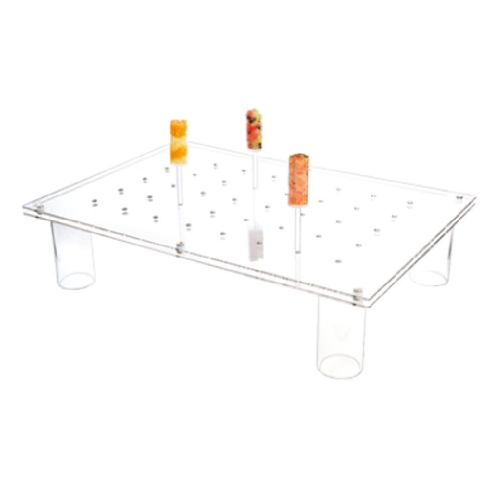 The JB Prince R740 40 Comatec Push Pop Stand is a versatile and functional display solution designed to meet the needs of various culinary settings. Measuring 19 inches in length and 13 inches in width, this stand features a rectangular base and is crafted from durable transparent plastic, ensuring both stability and aesthetic appeal. Designed specifically for the model R740, it is equipped with 40 strategically placed holes, allowing for optimal organization and display of push pops. This stand is ideal for caterers, pastry chefs, and event organizers looking to present push pops in an efficient and visually appealing manner. Its transparency and compact design make it suitable for a wide range of settings, from high-end events to casual gatherings, enhancing the presentation of culinary creations. The JB Prince R740 40 Comatec Push Pop Stand combines practicality with elegance, offering a specialized display option that accommodates a substantial number of push pops while maintaining a sleek and professional appearance. Its robust construction ensures long-lasting use, making it a valuable addition to any professional kitchen or event setup. This stand is an essential tool for culinary professionals seeking to elevate their presentation with a focus on detail and functionality.