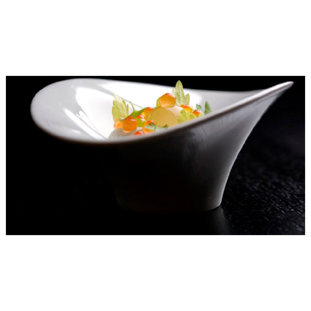 The JB Prince R809 Crucial Detail Miska Bowl is a meticulously crafted piece designed to meet the diverse needs of culinary professionals. Measuring 7-1/4 inches in length, 4-1/4 inches in width, and 1 inch in height, this elegant oval bowl is perfect for presenting a variety of dishes with finesse. Its elongated rim not only adds a touch of sophistication but also enhances the functionality by allowing for easy handling and serving. Made from high-quality porcelain, the bowl is finished in a classic white, providing a neutral backdrop that highlights the vibrant colors of any culinary creation. The JB Prince R809 is particularly valued in the hospitality industry, where presentation is key, making it an excellent choice for upscale restaurants and catering services that prioritize aesthetics and quality. Additionally, its durable construction ensures longevity, while its sleek design appeals to modern culinary trends. This bowl effortlessly combines style and practicality, making it a versatile addition to any professional kitchen or dining setting.
