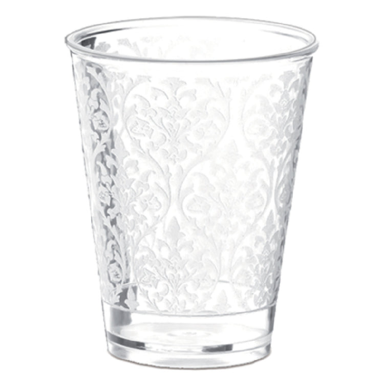 The JB Prince R836 Comatec Disposable Baroque Mini Glass is a meticulously designed product, ideal for serving small portions with style and ease. Each glass holds 2 oz. of liquid, standing 2-1/2 inches high, making it perfect for elegantly presenting appetizers, desserts, or drinks in a variety of settings. Crafted from transparent plastic, these glasses offer a sophisticated look while being conveniently disposable, reducing cleanup time and effort. The product's baroque-inspired design adds a touch of elegance, suitable for upscale events, caterers, and restaurants aiming to enhance their presentation aesthetically. With 300 pieces per pack, it serves as an economical solution for large gatherings and events, ensuring that all attendees receive a consistently high-quality presentation. The JB Prince R836 is especially valued in the catering and food service industries for its blend of functionality and refined appearance. Its compact size and durable construction make it versatile for different dining environments, providing a reliable choice for professionals seeking to impress their guests with attention to detail and style. Whether used for sophisticated banquets or casual settings, these disposable mini glasses meet the demand for both practicality and elegance in service.