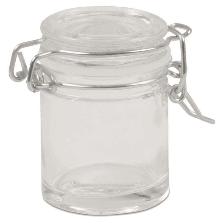 The JB Prince R860 Mason Jar is a compact and efficient storage solution with a capacity of 1 oz., making it an ideal choice for storing small quantities of ingredients or samples across various industries. Measuring 1-3/5 inches in diameter and 2-2/5 inches in height, this round mason jar is crafted from transparent glass, allowing for easy visibility of its contents. Its design includes a bail wire closure and a rubber gasket, ensuring an airtight seal that helps preserve the freshness of its contents. The JB Prince R860 Mason Jar is particularly suited for culinary professionals who require precise portioning or for those in laboratory settings where containment and visibility are essential. The durable glass construction and secure closure system make it a reliable choice for both temporary and long-term storage needs. Additionally, the clear design provides a clean and professional appearance, suitable for use in both display and practical applications. Whether utilized in a gourmet kitchen, a scientific lab, or a boutique retail setting, the JB Prince R860 Mason Jar combines functionality with aesthetic appeal, catering to a wide range of storage requirements with its unique design and robust sealing capability.