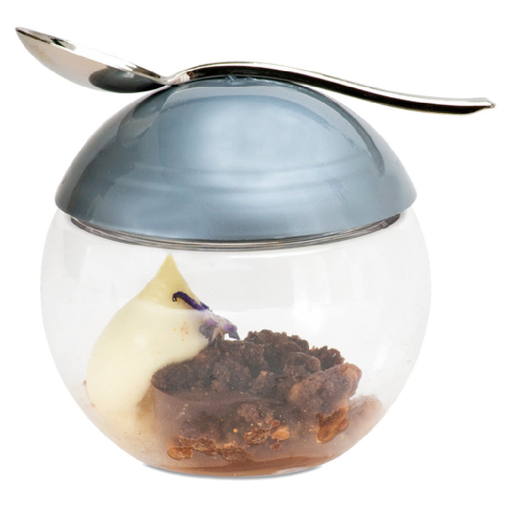 The JB Prince R875 Comatec Disposable Sphere Container is a versatile and practical solution for food presentation and storage. This container boasts a capacity of 8 oz., making it suitable for a variety of culinary applications. With dimensions of 3-1/2" in diameter and 3" in height, it offers ample space for creative plating and serving options. Crafted from transparent plastic, this container provides a clear view of its contents, enhancing the visual appeal of the dish. The inclusion of a gray screw-top lid ensures secure closure, maintaining the freshness and integrity of the contents. Packaged in quantities of 100 per pack, the JB Prince R875 is ideal for high-volume environments such as catering events, buffets, and food service establishments. Its disposable nature allows for convenient and efficient cleanup, saving valuable time and resources. This container is designed to meet the needs of professionals in the culinary industry who require reliable and elegant serving solutions for their presentations. Whether used for appetizers, desserts, or individual portions, the JB Prince R875 Comatec Disposable Sphere Container combines practicality with aesthetic appeal, making it a preferred choice for chefs and caterers looking to elevate their food presentation.