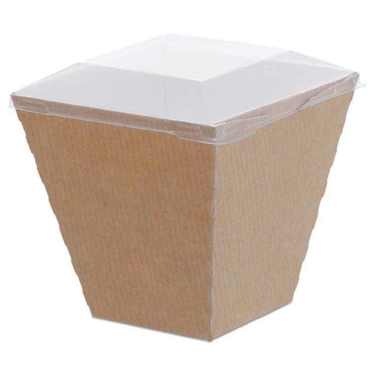 The JB Prince R881 2.75 Comatec Disposable Dish is a versatile and practical solution for food presentation, expertly designed with a geometric, square shape that measures 2-3/4 inches in length, width, and height. With a capacity of 7 ounces, it provides ample room for serving a variety of dishes, making it a perfect fit for catering events, parties, and upscale dining experiences. Constructed from corrugated cardboard, this dish boasts a heat resistance of up to 375°F, ensuring it can safely hold hot foods without compromising on structural integrity. The brown color gives it a classic, natural appearance, blending seamlessly with various table settings and themes. Available in a pack of 400, the JB Prince R881 2.75 dishes are ideal for high-volume usage, catering to the needs of both small and large-scale food service operations. Its unique combination of size, heat resistance, and material quality positions it as a reliable choice for professionals seeking disposable tableware that does not sacrifice style or functionality. This product’s design is particularly advantageous for those in the catering and hospitality industry, providing an elegant and practical solution for presenting a wide range of culinary creations.