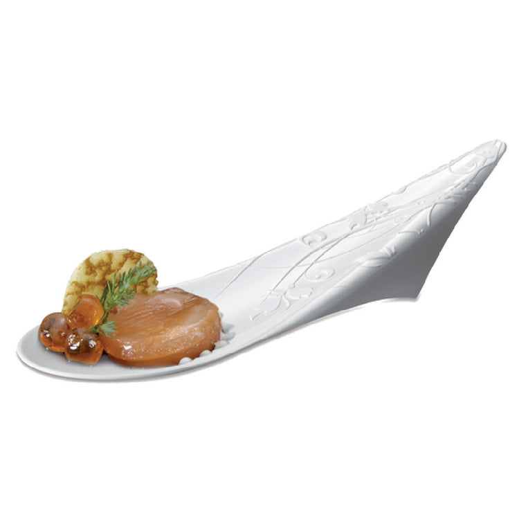 The JB Prince R920 W1 Tast Disposable Deco Spoon is a meticulously crafted utensil designed for both elegance and functionality, featuring a floral pattern that enhances its aesthetic appeal. Measuring 5 inches in length and 1-1/2 inches in width, this spoon provides a perfect balance between size and utility, making it an ideal choice for catering events, upscale gatherings, and restaurant presentations that demand a touch of sophistication. Crafted from high-quality plastic, the white disposable spoon ensures convenience and hygiene, especially suitable for settings where quick and efficient clean-up is essential. With an impressive count of 200 spoons per pack, it caters to the needs of large-scale events and food service operations, ensuring ample supply for various occasions. Its intricate design appeals to chefs and event planners who seek to elevate the visual presentation of their culinary creations. The JB Prince R920 W1 Tast Disposable Deco Spoon stands out in the market for its blend of decorative charm and practical application, providing a unique value proposition for professionals in the hospitality and food service industries who aim to impress with their table settings while maintaining ease of use.