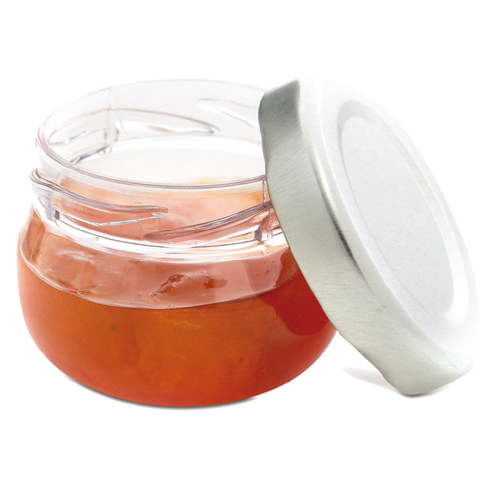 The JB Prince R927 Comatec Disposable Mini Jam Pot is a meticulously designed container that serves multiple segments within the culinary industry, particularly suited for catering businesses, restaurants, and gourmet food producers. This compact pot has a capacity of 1 ounce, making it ideal for portion-controlled servings. Measuring 1-3/4 inches in diameter and 1-1/3 inches in height, the pot provides a perfect balance between size and functionality, allowing for easy storage and elegant presentation. Crafted from transparent plastic, this mini jam pot offers a clear view of its contents, enhancing the visual appeal of any condiment or preserve it holds. Each pot comes equipped with a metal screw-top lid, ensuring a secure and airtight seal that helps to preserve freshness and prevent spills during transport. These pots are available in packs of 200, catering to high-volume needs while maintaining convenience and cost-effectiveness. The JB Prince R927 Comatec Disposable Mini Jam Pot stands out as a practical solution for food service professionals seeking reliable, single-use containers that blend functionality with a refined appearance, making it a valuable option across various culinary applications.