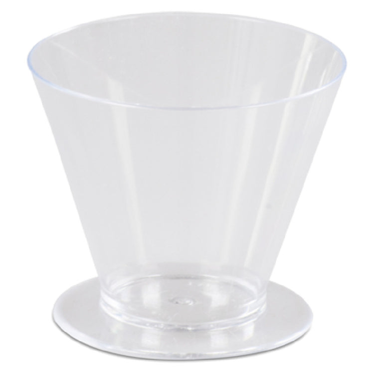 The JB Prince R978 Martellato Disposable Cup is a versatile choice for catering events, culinary displays, and food service establishments that require practical yet elegant presentation solutions. This cup holds 2.36 oz. and features dimensions of 2-1/2" in diameter and 2-1/5" in height, offering a manageable size for portion-controlled servings. Its tapered design, complete with a stable base, provides convenience and aesthetic appeal, enhancing the dining experience. Crafted from transparent plastic, these cups allow for the visual appreciation of the contents, making them ideal for showcasing layered desserts, appetizers, and more, without compromising on convenience or safety. Supplied in packs of 100, the JB Prince R978 is an efficient option for high-volume needs, ensuring that businesses and event planners can maintain a seamless service flow. These disposable cups cater to a wide array of industry segments, from upscale restaurants looking for stylish single-use tableware to catering companies that require reliable and economical serving options. Their practicality, combined with a clear design, makes the JB Prince R978 Martellato Disposable Cup a functional asset in any professional setting where presentation and efficiency are paramount.