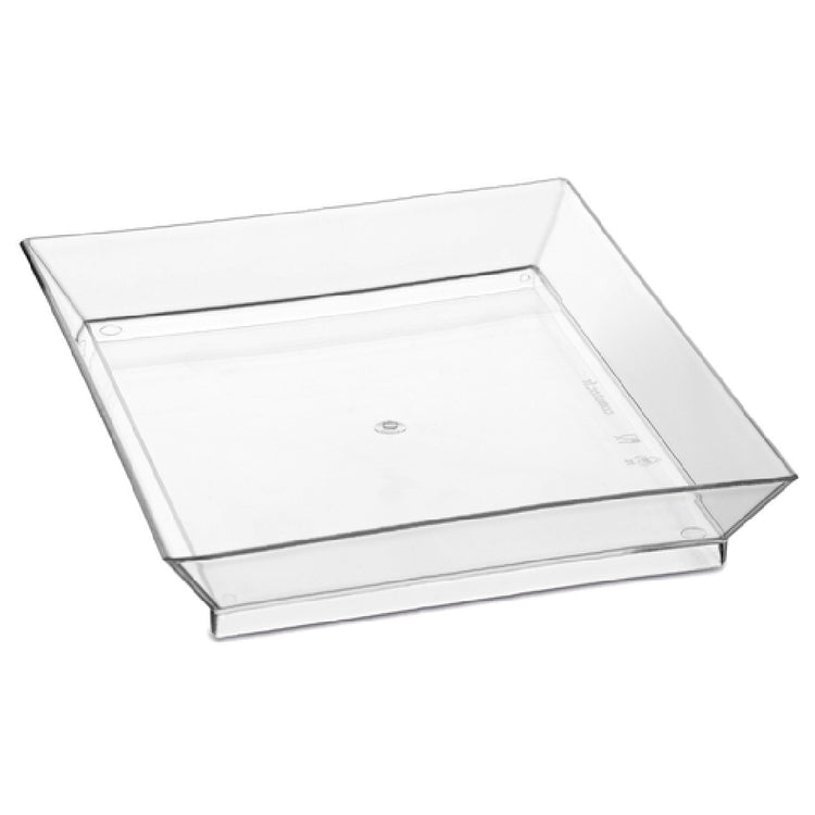 The JB Prince RB118 Comatec Disposable Cubik Plate 3-9/10" x 3-9/10" square plastic plate represents a unique fusion of practicality and elegance, making it an ideal choice for catering, events, and food presentations across various market segments in the culinary industry. Manufactured as a square plate with dimensions of 3-9/10" x 3-9/10", this product is crafted from a high-quality transparent plastic, offering a modern and sophisticated appearance while ensuring convenience through its disposable nature. Each pack contains 100 plates, providing an ample supply for large gatherings or events. The transparency of the plate enhances the visual appeal of the food presentation, making it suitable for upscale dining experiences or casual settings where aesthetic value is a priority. Chefs and event planners can rely on the RB118 Comatec Cubik Plate for its balance of style and functionality, which allows it to seamlessly integrate into any culinary environment. Its compact size makes it particularly advantageous for serving appetizers, desserts, or sample portions, thus catering to a wide array of service needs without sacrificing elegance or efficiency.