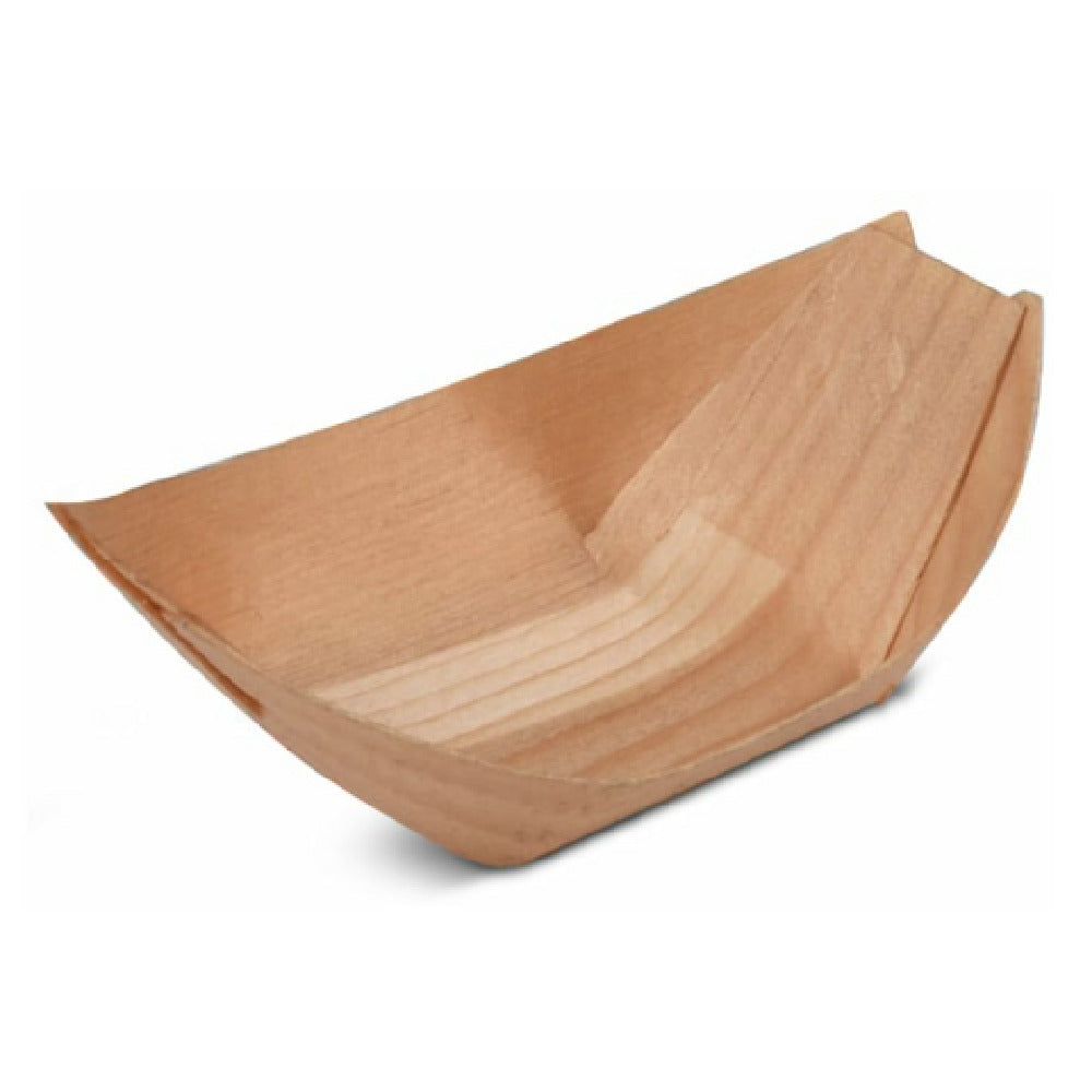 The JB Prince RB328 2.5 Mini Poplar Wood Boat, sized at 2.62 inches in width, 2 inches in depth, and 1 inch in height, is crafted from bamboo, offered in a convenient 50 pack. This thoughtfully designed mini boat is perfect for serving culinary creations with elegance and precision. Its compact dimensions make it ideal for presenting appetizers, desserts, or hors d'oeuvres in a visually appealing manner. The natural poplar wood material not only enhances the aesthetic appeal but also ensures an eco-friendly choice for environmentally conscious events. The use of bamboo further contributes to its sustainability, aligning with green dining initiatives. This product is particularly valuable for catering services, high-end restaurants, and event planners who prioritize both style and sustainability in their presentations. Its size and material make it versatile for a variety of culinary applications, from showcasing delicate sushi to serving bite-sized desserts. The JB Prince RB328 2.5 Mini Poplar Wood Boat stands out in the market due to its combination of natural materials and functional design, offering a unique solution for presenting food in an upscale and environmentally friendly manner.