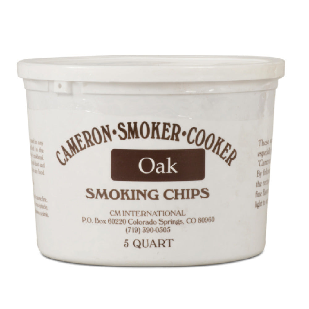 JB Prince S191 O Cameron Wood Chips 5qt Oak is a specialized product designed for culinary professionals and enthusiasts seeking to elevate their smoking and grilling endeavors. The product consists of oak wood chips, packaged in a 5-quart volume, ensuring an ample supply for various cooking applications. The oak wood is known for imparting a medium to a strong smoky flavor, making it a preferred choice for enhancing the taste profile of a wide range of dishes. These wood chips are meticulously processed to ensure optimal size and consistency, allowing for even and efficient burning, which is crucial in achieving the desired smoke intensity and cooking results. The JB Prince S191 O Cameron Wood Chips are particularly valued in gourmet kitchens and barbecue settings, where precision and quality in flavoring are paramount. The product's versatile nature makes it suitable for use in both traditional smokers and modern grilling equipment. With its focus on delivering a robust oak flavor, this product caters to a diverse market segment, including professional chefs, caterers, and home cooking enthusiasts, offering them a reliable and high-quality option to enrich their culinary creations.
