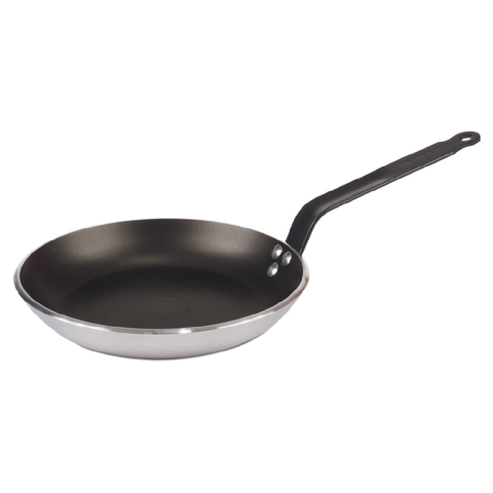 The JB Prince S322 24 De Buyer Induction Frying Pan, with a 9-4/9" diameter, is an exemplary piece of cookware engineered for culinary professionals and home chefs alike. It features a robust 5-layer non-stick coating that is PFOA-free, ensuring a safe cooking experience without compromising on performance. The pan's 5mm thick aluminum construction provides excellent heat distribution, making it suitable for precision cooking on induction cooktops. A riveted handle offers durability and a secure grip, enhancing the pan’s practicality in high-paced kitchen environments. Designed for versatility, this frying pan caters to a range of culinary tasks, from searing and sautéing to frying and browning. Its technical specifications are meticulously crafted to meet the diverse needs of chefs, offering reliability and efficiency in one package. The JB Prince S322 24 De Buyer Induction Frying Pan stands out in the market for its combination of advanced cooking technology and user-focused design, providing an invaluable tool for achieving culinary excellence in both professional and personal settings.