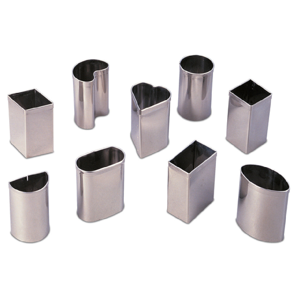 JB Prince T287 Petit Four Cutters Set 1-1/4" Dia. X 2"H Various Shapes Includes Metal Box - 1/Set