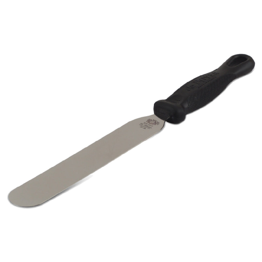 The JB Prince U134 20 FKOfficium Pastry Spatula 7-9/10" Blade Straight is an essential tool for professional pastry chefs and home baking enthusiasts alike. Featuring a straight blade that measures 7-9/10 inches, this spatula excels in precision and control, facilitating a range of baking tasks from delicate icing to intricate decoration. Crafted from high-quality stainless steel, the blade ensures durability and a long-lasting edge. The polyamide handle, reinforced with fiberglass, provides a sturdy grip and withstands rigorous use, adding to the spatula's overall robustness. A convenient hanging hole at the end of the handle offers easy storage solutions, maximizing space in busy kitchen environments. The spatula is dishwasher safe, allowing for hassle-free cleaning after use. With its sleek black design, the JB Prince U134 20 FKOfficium Pastry Spatula combines functionality with aesthetic appeal, making it a valuable addition to any culinary toolkit. Its specialized construction caters to diverse market segments within the culinary industry, from elite pastry kitchens requiring precise tools to home bakers seeking professional-grade utensils. This spatula's combination of technical specifications and practical features underscores its unique value proposition in the world of pastry and baking.