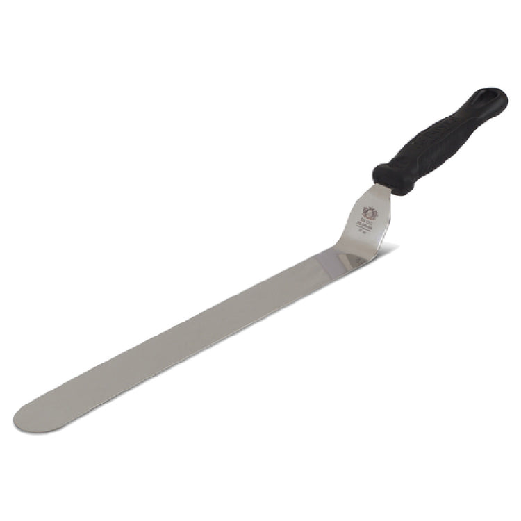 The JB Prince U135 30 FKOfficium Pastry Spatula 11.8" Offset is a precision tool designed for culinary professionals seeking both functionality and durability. With an 11.8-inch length, this spatula is expertly crafted from high-quality stainless steel, providing a reliable and sturdy blade for various pastry tasks. The offset design allows for easy handling and precise spreading, making it a valuable tool in both professional kitchens and home baking environments. The spatula features a polyamide handle reinforced with fiberglass, ensuring a comfortable grip and enhanced durability that withstands the demands of frequent use. For added convenience, the handle includes a hanging hole, making storage simple and efficient. This spatula is also dishwasher safe, allowing for easy and hygienic cleaning without compromising its structural integrity. The sleek black design adds a touch of elegance to its robust functionality. Suitable for pastry chefs, bakers, and culinary enthusiasts, the JB Prince U135 30 FKOfficium Pastry Spatula is a versatile and essential addition to any kitchen toolkit, offering the perfect combination of performance and reliability in a professional pastry spatula.