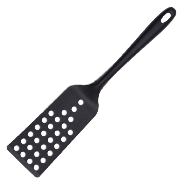 The JB Prince U149 Spatula 12-1/2" Perforated is a meticulously designed kitchen tool, ideal for culinary professionals seeking precision and durability. The spatula boasts a length of 12-1/2 inches, providing ample reach for a variety of cooking tasks. Its perforated design enhances functionality by allowing efficient draining and flipping, making it particularly useful in scenarios where excess liquid needs to be separated from food. Crafted from high-quality nylon, this spatula is resistant to heat up to 428°F (220°C), ensuring it remains sturdy and reliable even during high-temperature cooking. The ergonomic handle is thoughtfully designed to provide a comfortable grip, reducing hand fatigue during extensive use. Additionally, the handle features a convenient hanging hole, allowing for easy storage and accessibility in busy kitchen environments. Presented in a sleek black finish, the JB Prince U149 Spatula combines practical utility with aesthetic appeal. This versatile tool caters to a wide range of culinary professionals, from chefs in bustling restaurants to home cooks aspiring to refine their skills. Its durable construction and user-friendly features make it a valuable addition to any kitchen toolkit, enhancing efficiency and precision in meal preparation.