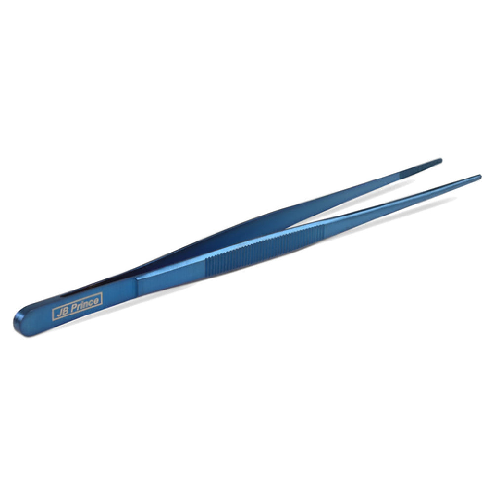 The JB Prince U155 B Tweezer 10" Straight Tip is a premium tool crafted for precision and efficiency, ideal for culinary professionals and enthusiasts alike. This tweezer is meticulously engineered with a 10-inch straight tip, providing an extended reach and enhanced control for delicate tasks. Constructed from high-quality stainless steel, it ensures durability and resistance to corrosion, making it a reliable choice for long-term use in demanding kitchen environments. The tool is distinguished by its striking blue finish, adding a touch of style to its functional design. The JB Prince U155 B is an essential accessory for chefs, offering unparalleled precision in tasks such as plating, garnishing, or handling small ingredients. Its robust construction and ergonomic design cater to the needs of professionals in both high-pressure restaurant settings and home kitchens, where precision is paramount. The combination of its length, material, and color makes it not only a practical utensil but also a visually appealing addition to any culinary toolkit. With the JB Prince U155 B Tweezer, users across different segments of the culinary industry can achieve meticulous presentation and handling with confidence and ease.