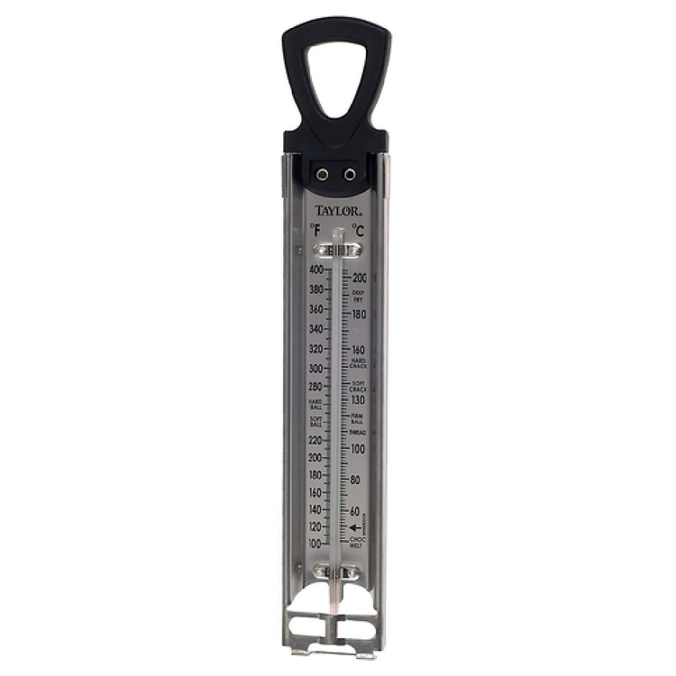 The JB Prince U505 B Taylor Confection Thermometer is an essential tool for culinary professionals and confectioners who require precision in temperature measurement. With a substantial length of 12 inches, this thermometer is designed for easy immersion in various food preparations. It features a graduated temperature range of 100 to 400°F, allowing users to accurately monitor a wide array of cooking processes, from tempering chocolate to deep frying. The inclusion of pot clips ensures the thermometer stays securely in place during use, providing hands-free convenience. Crafted from durable stainless steel, this thermometer offers longevity and reliable performance even under heavy-duty conditions. The black plastic components contribute to its sleek appearance while enhancing grip and handling. Suitable for chefs, pastry experts, and candy makers, the JB Prince U505 B Taylor Confection Thermometer stands out for its precise temperature measurement, facilitating perfect results in confectionery arts and various cooking techniques. Its robust construction and user-friendly design make it a valuable asset in both commercial kitchens and home-based culinary ventures, catering to the demands of professionals and enthusiasts alike who prioritize accuracy and efficiency in their culinary endeavors.