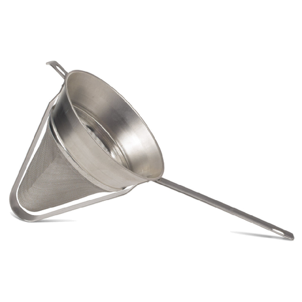 The JB Prince U506 B Mesh Strainer - 8" Dia. 1" Metal Band is a premium kitchen tool designed for culinary professionals who demand precision and durability in their kitchen equipment. Featuring an 8-inch diameter, this strainer is ideal for handling moderate quantities of ingredients, making it a versatile addition to any kitchen setting. The superfine mesh is engineered to provide exceptional filtration, ensuring that even the smallest particles are effectively strained, which is essential for achieving smooth sauces and soups. Reinforced with solid construction, this strainer is crafted from tinned steel, a material known for its strength and rust-resistant properties, thereby promising long-lasting performance. The 1-inch metal band adds further stability and support to the overall structure, preventing deformation over time and with frequent use. This combination of high-quality materials and design elements makes the JB Prince U506 B Mesh Strainer not only a reliable tool for everyday kitchen tasks but also a valuable investment for professional chefs and culinary enthusiasts aiming to elevate their food preparation processes with precision and efficiency. Its robust design ensures it can withstand the rigorous demands of commercial kitchens while still being accessible for home kitchen use, making it a multifaceted tool suitable for diverse market segments.