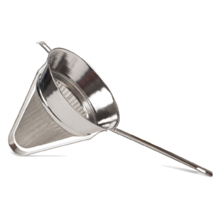 The JB Prince U506 C Mesh Strainer is an 8-inch diameter kitchen tool that integrates a superfine mesh with a 1-inch metal band for enhanced functionality. Crafted from stainless steel, this strainer represents reinforced and solid construction, ensuring durability and high performance in various culinary applications. Its superfine mesh is essential for achieving smooth textures, ideal for professionals in the culinary industry who require precision, such as pastry chefs and sauce makers. The robust metal band provides additional stability, making it suitable for use in both high-volume commercial kitchens and home settings. The stainless steel construction offers resistance to rust and corrosion, extending the product's lifespan and maintaining hygiene standards. The JB Prince U506 C Mesh Strainer is a versatile essential for those who value efficiency and reliability in their kitchen tools, bridging the gap between quality and practicality. Its design focuses on delivering consistent results while being easy to clean and maintain, catering to the rigorous demands of professional kitchens and the discerning needs of home chefs. With its specific technical specifications and emphasis on quality, the JB Prince U506 C Mesh Strainer stands out as a valuable asset in food preparation environments.