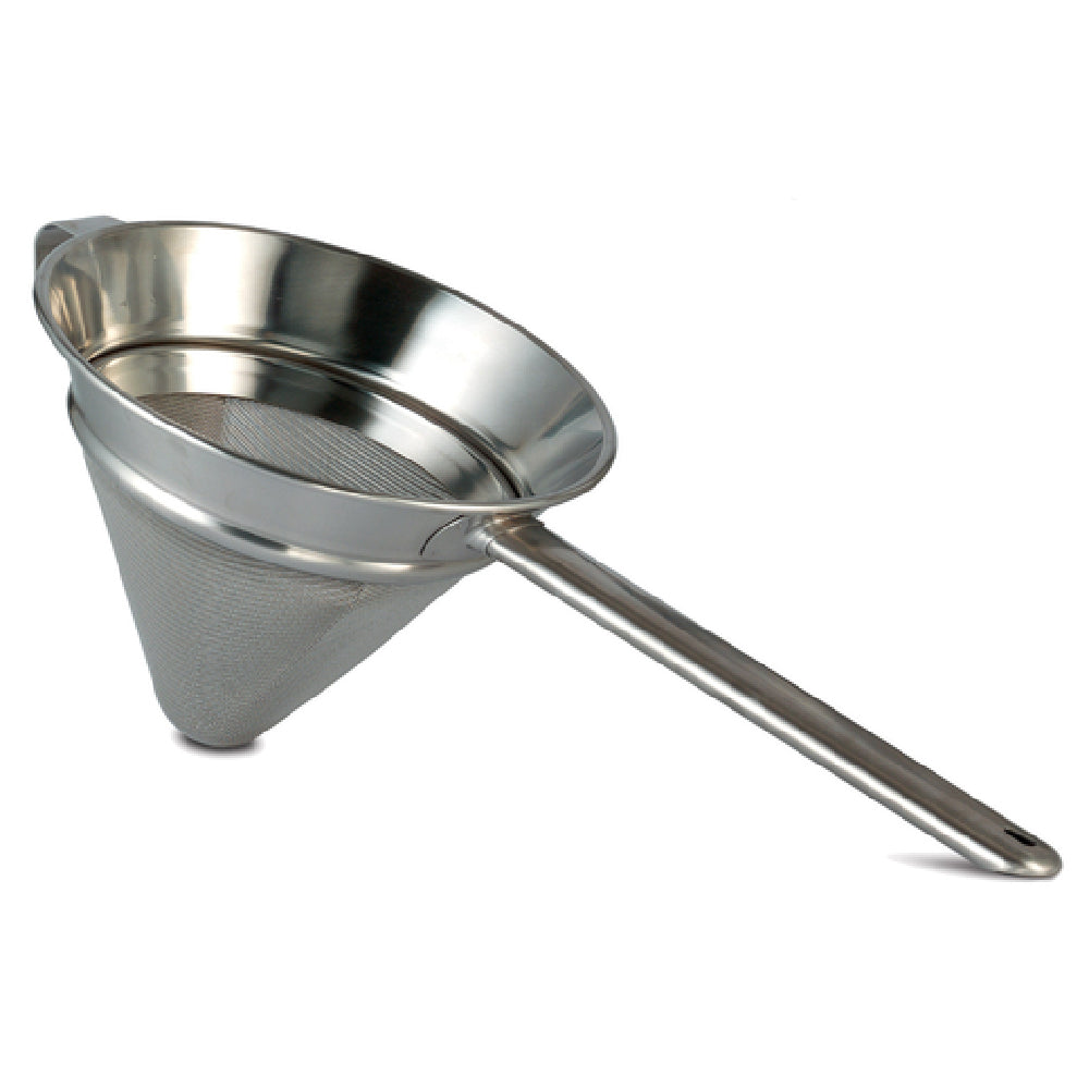The JB Prince U543 Mesh Strainer - 9-1/2" Dia. Fine Mesh is a meticulously crafted kitchen tool designed to meet the high standards of culinary professionals. With a diameter of 9-1/2 inches, this strainer provides ample surface area for efficient straining of sauces, stocks, and other culinary creations. The fine mesh is expertly engineered to ensure smooth and consistent results, capturing even the smallest particles for a refined texture. Constructed from 18/10 stainless steel, the strainer offers exceptional durability and resistance to corrosion, making it a reliable choice for both commercial kitchens and home use. Reinforced rods are welded to the frame, enhancing stability and longevity, ensuring it withstands rigorous use in demanding environments. The tube-shaped handle provides a comfortable grip and precise control, allowing for seamless operation. This strainer is an indispensable tool for chefs, caterers, and food enthusiasts who prioritize quality and efficiency in their culinary processes. Its robust design and superior materials make the JB Prince U543 Mesh Strainer a valuable asset for any kitchen, delivering unmatched performance and reliability for a wide range of straining tasks.