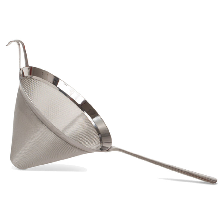 JB Prince U557 7 Mesh Strainer 7" Dia. Conical is a meticulously crafted kitchen tool, designed to meet the high demands of culinary professionals and home chefs alike. Featuring a 7-inch diameter, this conical strainer is engineered with a fine mesh, ensuring precision and efficiency in straining tasks. It is constructed from 18/10 stainless steel, a composition known for its superior durability and resistance to corrosion, providing a long-lasting and reliable performance. The strainer is equipped with a sturdy handle, offering comfort and control during use. Its conical shape is specifically designed to facilitate a smooth and even flow of liquids, making it an essential tool for tasks that require precision, such as straining sauces, soups, and broths. This product is ideal for various market segments, including professional kitchens, culinary schools, and home cooking enthusiasts who value quality and functionality in their kitchen tools. The JB Prince U557 stands out for its robustness and design, making it a valuable addition to any kitchen setup where fine straining is required, complementing the meticulous standards of culinary arts. Its fine mesh and ergonomic handle make it not just a tool, but a professional companion in the kitchen.