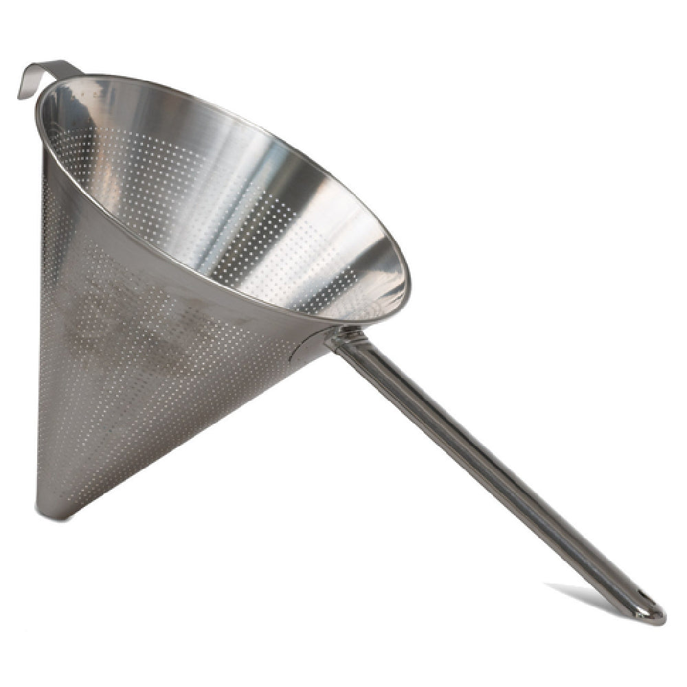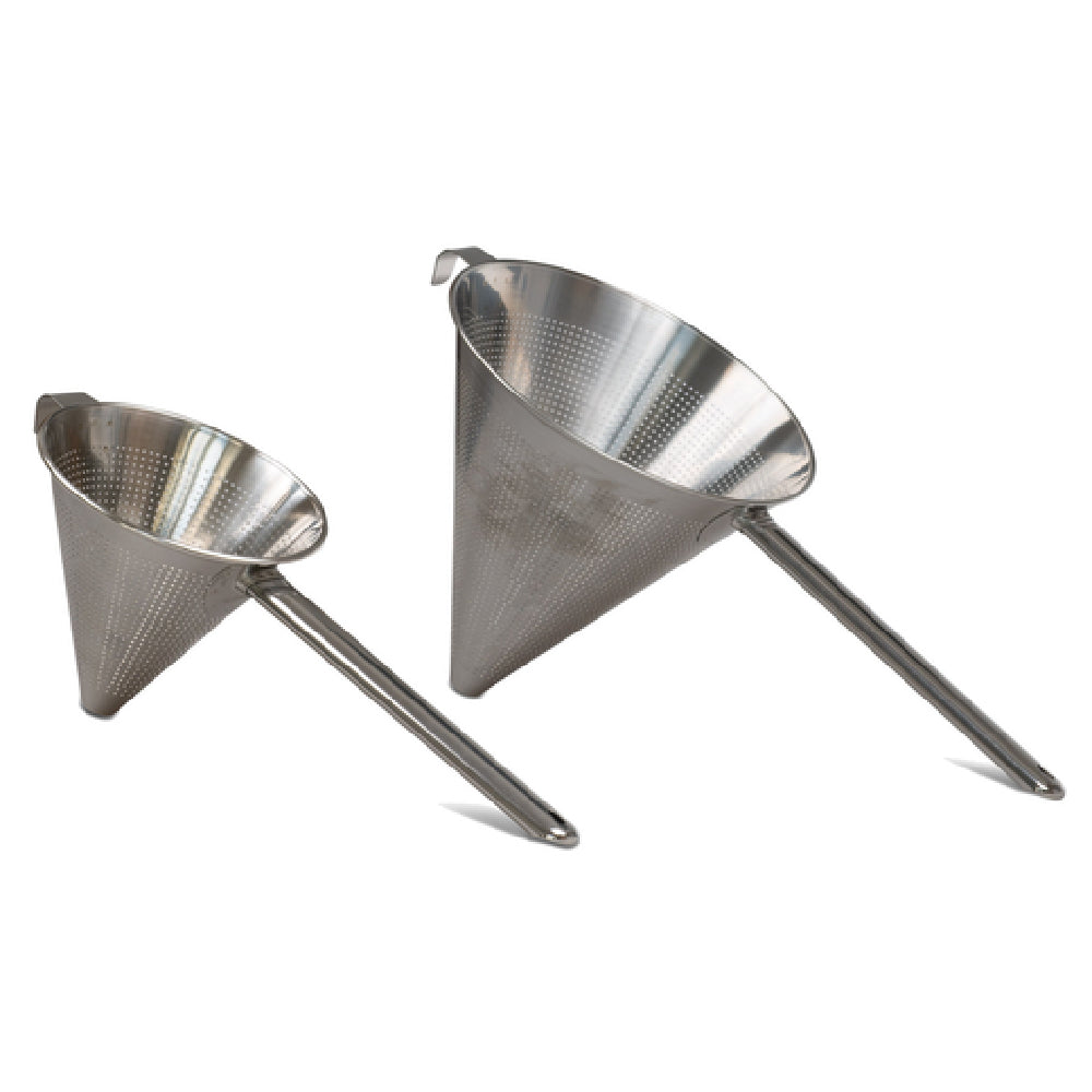 The JB Prince U558 9.5 China Cap Strainer is an essential tool for any professional kitchen, known for its 9-1/2" diameter and medium perforation that offers precise straining capabilities. Expertly crafted from 18/10 stainless steel, this strainer combines robustness and corrosion resistance, ensuring longevity and dependability in high-demand culinary environments. The medium perforation design is tailored for a variety of straining tasks, making it versatile for different segments within the food service industry, from fine dining restaurants to catering services. Its durable construction supports rigorous use, while the stainless steel material facilitates easy cleaning and maintenance, critical for upholding hygiene standards in busy kitchens. The JB Prince U558 9.5 China Cap Strainer stands out for its effective functionality, blending size and material excellence to meet diverse straining needs. Its thoughtfully engineered design is a testament to JB Prince's commitment to quality, catering to chefs and culinary professionals who value precision and durability in their kitchen tools.