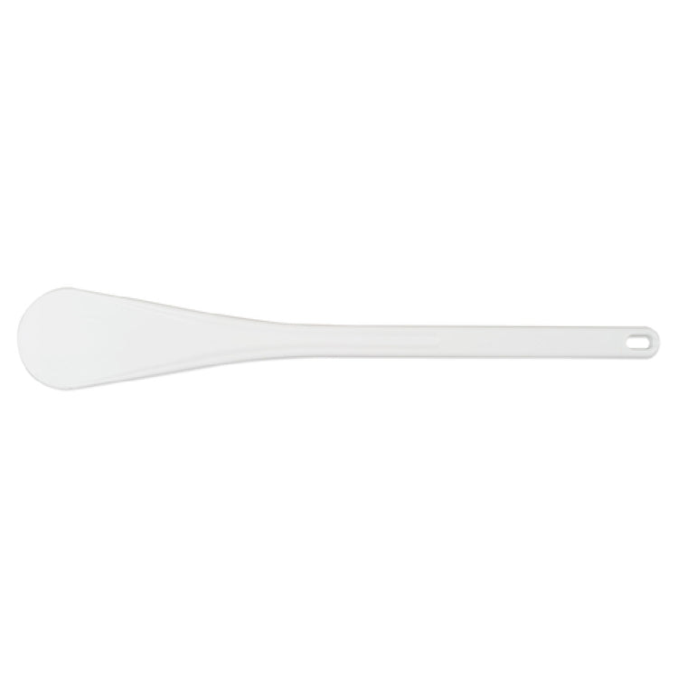 The JB Prince U585 20 Matfer Spatula 20" Flat Rounded Blade is an expertly crafted kitchen tool, designed for versatility and durability across various culinary applications. Its 20-inch flat rounded blade is made from Exoglass® reinforced plastic, a material renowned for its resilience and heat resistance, withstanding temperatures up to 430°F. This makes it ideal for both professional chefs and home cooks who require reliable performance under high-temperature conditions. The spatula features a white handle that provides an ergonomic grip, ensuring comfort during extended use. This product is particularly beneficial for segments of the market that prioritize kitchen tools capable of maintaining structural integrity under heat, such as pastry chefs and catering professionals. The JB Prince U585 20 Matfer Spatula performs exceptionally well in environments where precision and durability are paramount, supporting a wide range of culinary techniques from delicate folding to robust mixing. Its construction from Exoglass® also ensures ease of maintenance and longevity, making it a practical asset for any kitchen setting where efficiency and durability are essential. This spatula represents a harmonious blend of innovative material technology and functional design, catering to the exacting standards of culinary experts worldwide.