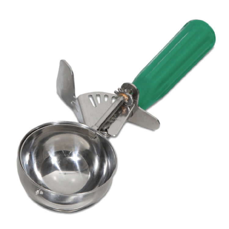The JB Prince U685 12 Hamilton Beach Disher Size 123 Oz. Stainless Steel is a precision-designed utensil, tailored for the rigorous demands of the culinary industry. Featuring a size 12 disher, it accurately portions 3 oz. servings, ensuring consistency and efficiency during food preparation. Crafted with high-quality stainless steel, this disher guarantees durability and resistance to corrosion, an essential trait for long-term use in professional kitchens. The ergonomic sure grip handle, colored in green, provides a comfortable and secure hold, reducing the risk of slipping during use, even in high-pressure environments. This feature is particularly advantageous for catering services, large-scale food production, and restaurants where speed and precision are crucial. Additionally, the disher is NSF certified, a testament to its adherence to public health and safety standards, making it suitable for diverse foodservice applications. The JB Prince U685 12 Hamilton Beach Disher is a reliable and indispensable tool for chefs and food service professionals seeking precision, reliability, and compliance with industry standards in portion control.