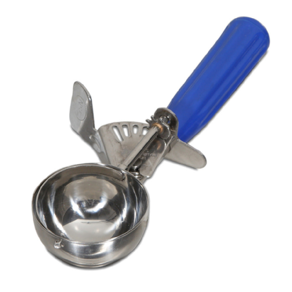 The JB Prince U685 16 Hamilton Beach Disher Size 16-2-1/2 Oz. Stainless Steel is a precision culinary tool meticulously engineered for those in the food service industry, especially professional chefs and kitchen staff in commercial settings. This disher, with its 2-1/2 oz. capacity, is designed for consistent portion control, ideal for serving soups, sides, and other dishes where precision is paramount. The stainless steel construction ensures durability and long-lasting performance even under rigorous use. Featuring a sure grip handle, this disher offers comfort and ease of use, reducing hand fatigue during repetitive tasks. The handle is color-coded blue, facilitating quick size identification and preventing cross-contamination in busy kitchen environments. With its NSF certification, the JB Prince U685 16 meets high standards for public health protection, making it a reliable choice for establishments that prioritize food safety and sanitation. This disher is an essential tool for diverse market segments within the food industry, including restaurants, catering services, and institutional dining, where precise portioning is key to maintaining quality and consistency. Its thoughtful design and robust materials make it an indispensable utensil for any food service operation striving for excellence.