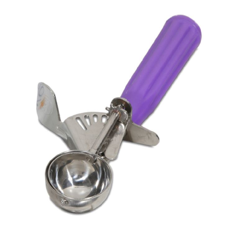 The JB Prince U685 40 Hamilton Beach Disher Size 401 Oz. Stainless Steel is a highly functional tool designed for precision and durability in food service environments. Crafted with stainless steel, this disher ensures longevity and resistance to corrosion, making it suitable for frequent use in busy kitchens. It features a sure grip handle in an attractive orchid color, providing comfort and ease of use during repetitive tasks, and is particularly beneficial for environments where food portioning needs to be consistent and efficient. This disher is NSF certified, guaranteeing that it meets strict standards for public health protection, making it a reliable choice for professional chefs and food service providers. The size 40 specification, corresponding to a 1 oz. capacity, is ideal for portioning small servings such as cookie dough, ice cream, or other semi-solid foods, making it a versatile tool for both commercial and home kitchens. Its thoughtful design and quality construction make the JB Prince U685 40 Hamilton Beach Disher an essential utensil for those who prioritize precision and hygiene in food preparation.