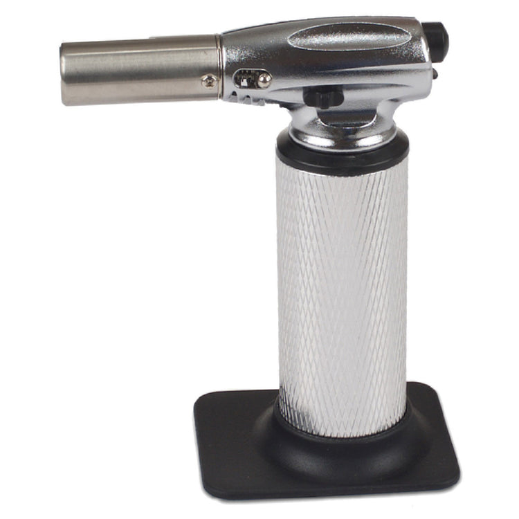 The JB Prince U749 Butane Torch is a compact and efficient tool designed for precision and ease-of-use in culinary and industrial applications. Standing at 7 inches high, this torch is equipped with a 1 oz. fuel cylinder, although the fuel itself is not included with the purchase. Its standout feature is the self-starting mechanism combined with a lock-on button, offering users convenience and safety by maintaining a consistent flame without the need for continuous manual operation. The torch is capable of producing a powerful 2700°F jet flame, making it ideal for tasks that require high heat and precision, such as caramelizing sugar or searing meats. Constructed with durable stainless steel, the JB Prince U749 ensures longevity and resilience under frequent use. It is supported by a sturdy black plastic base that enhances stability during operation, reducing the risk of accidents. This torch is a versatile tool, serving professional chefs, hobbyist cooks, and industrial users who require reliable and high-intensity flame performance. Its compact design coupled with efficient functionality makes it a valuable addition to kitchens and workshops, where precision and heat control are paramount.