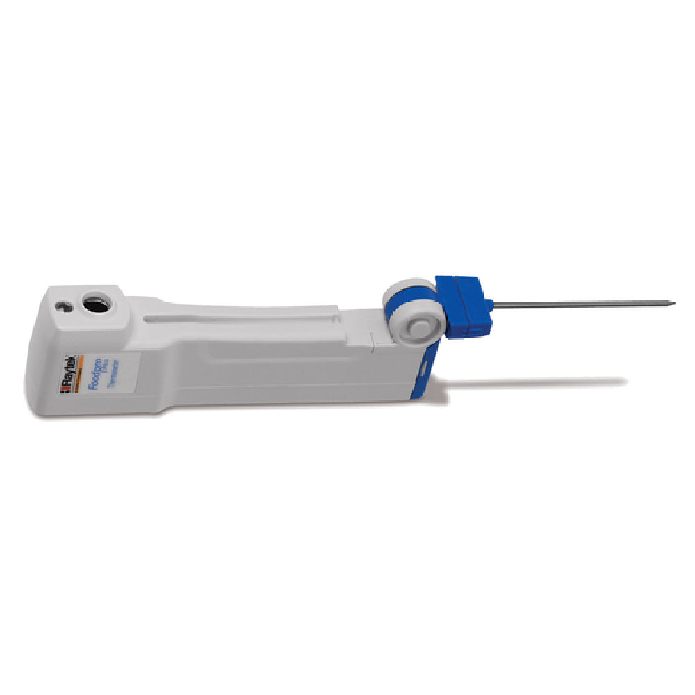 The JB Prince U902 Food Safety Laser/Probe Thermometer is a versatile tool designed for accuracy and convenience in temperature measurement for various food industry sectors. Featuring a dual-functionality with a non-contact infrared sensor and a probe, this thermometer allows for a comprehensive temperature range. The infrared capability measures from -30 to 525°F (-35 to 275°C), making it ideal for quick surface temperature checks, while the probe measures from -40 to 390°F (-40 to 200°C), suitable for internal temperature readings. Its 6-1/2-inch length ensures ease of handling and precision in diverse culinary settings. Constructed from durable plastic in a sleek white and blue design, it is both NSF and HACCP compliant, underscoring its adherence to high food safety standards. The thermometer comes with a convenient canvas belt sheath for easy portability and is powered by a 9-volt battery, providing reliable functionality in busy kitchen environments. This product is particularly valuable for chefs, food safety inspectors, and catering professionals who require robust and reliable temperature measurement tools to ensure food safety compliance and quality assurance in their operations.